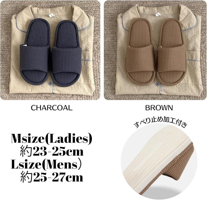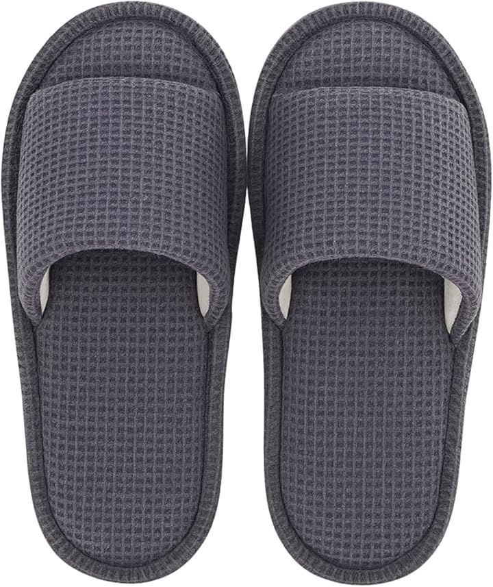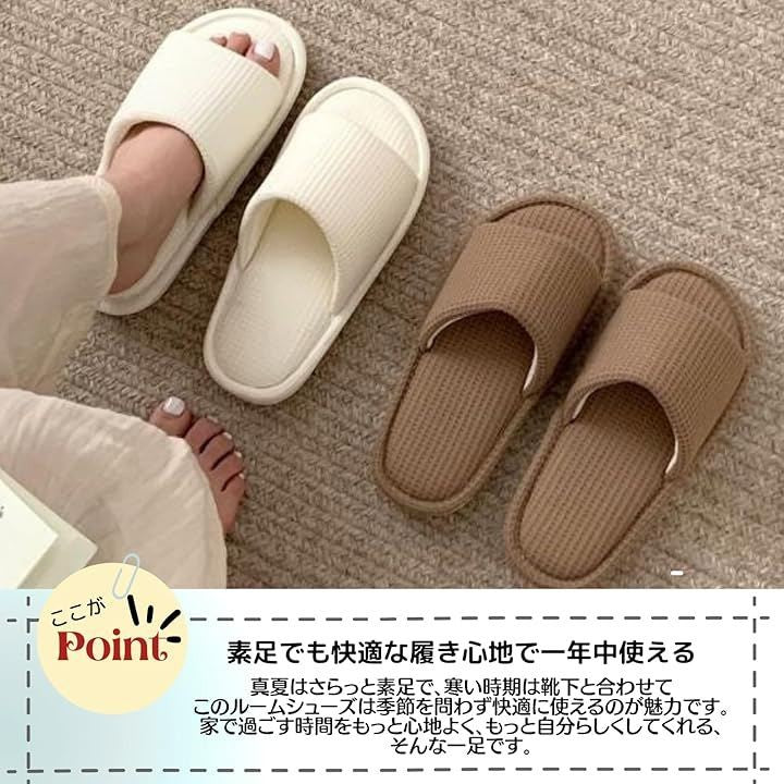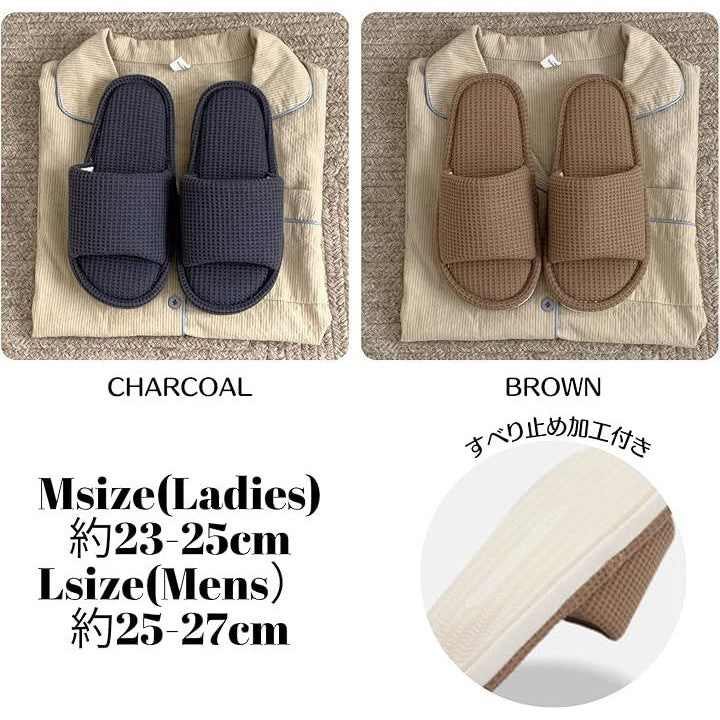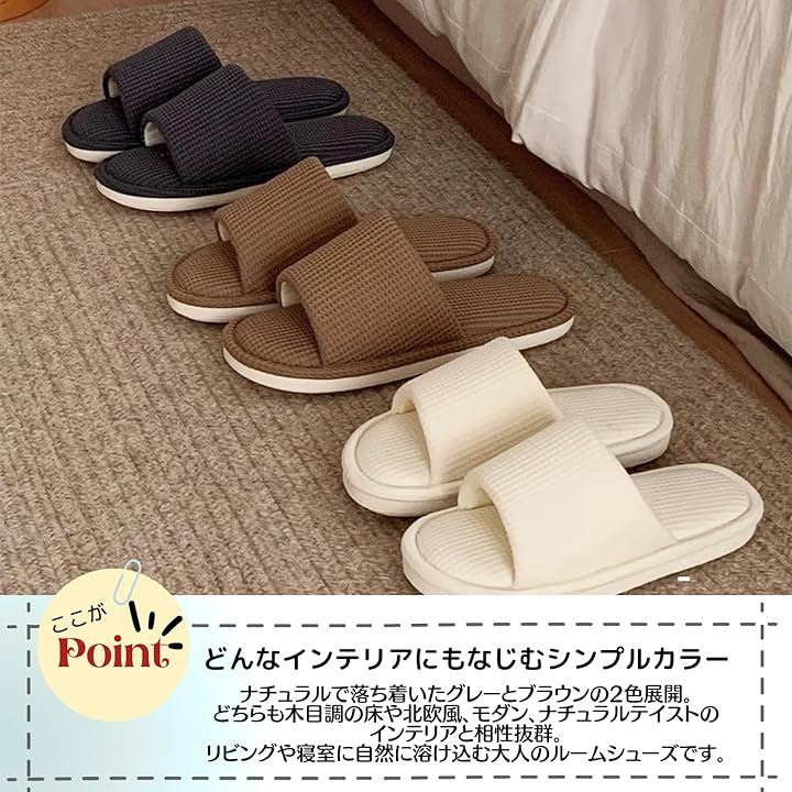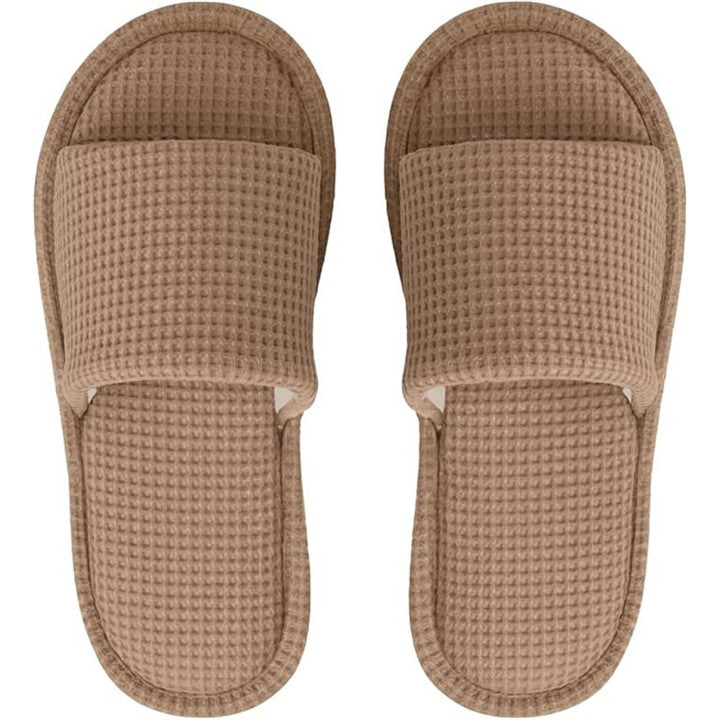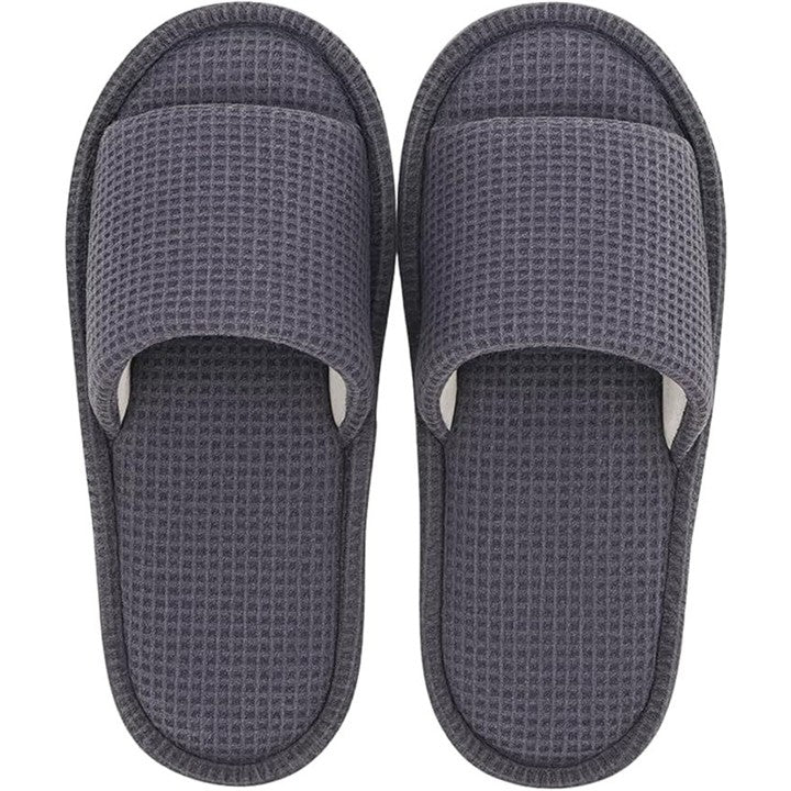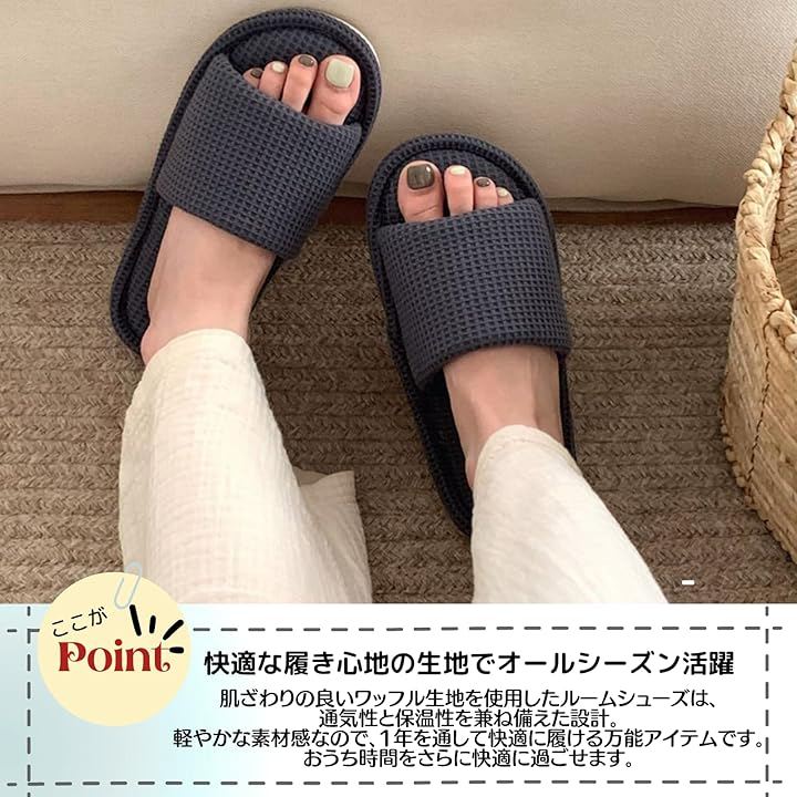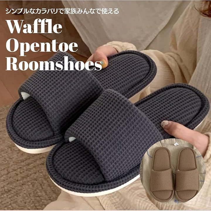 オープン トゥ ルームシューズ インドア スリッパ 室内履き 前開き ワッフル生地 すべり止め付き リビング キッチン ペア 無地 シンプル