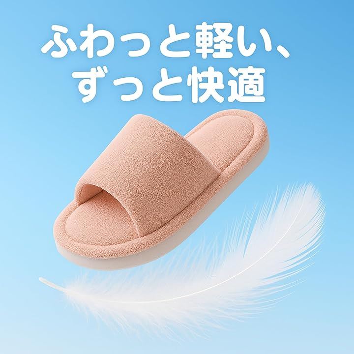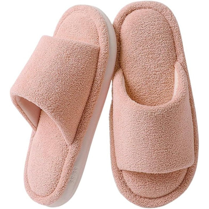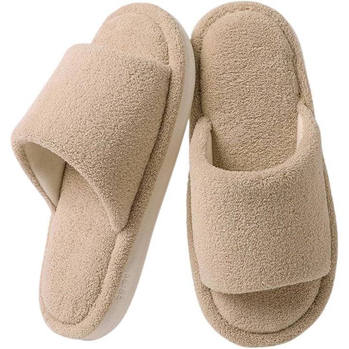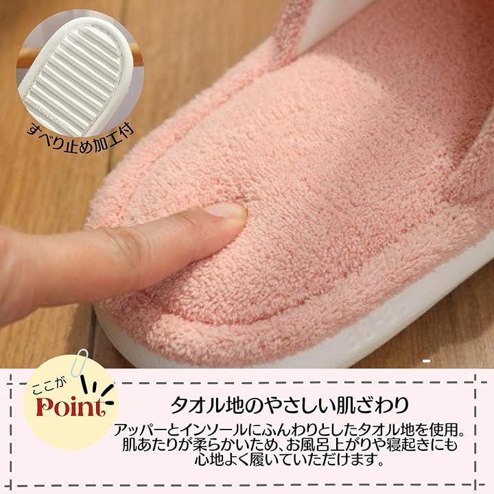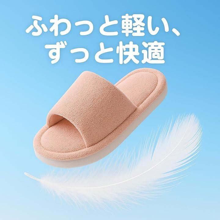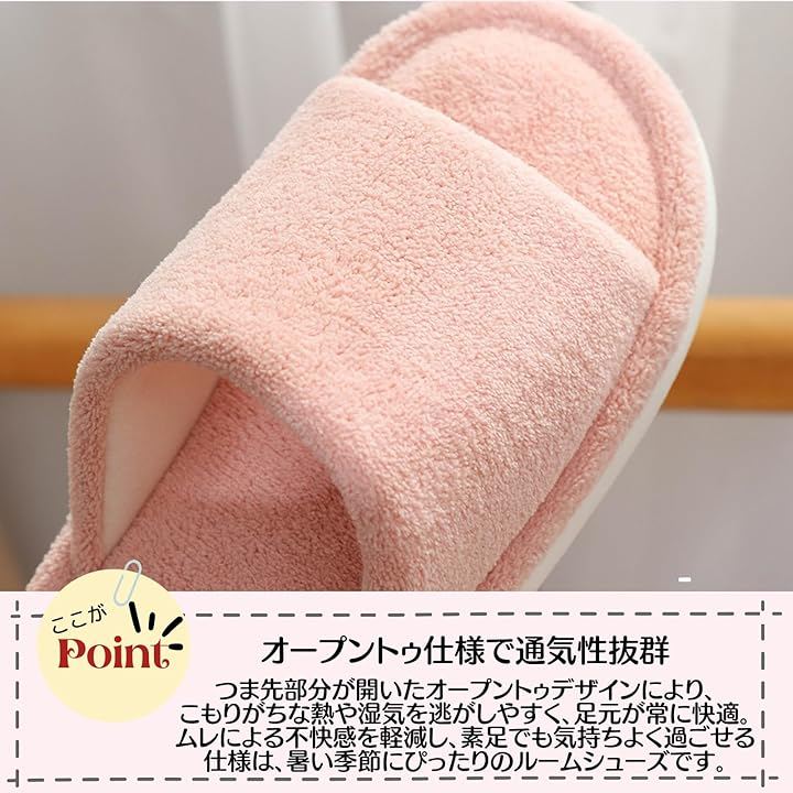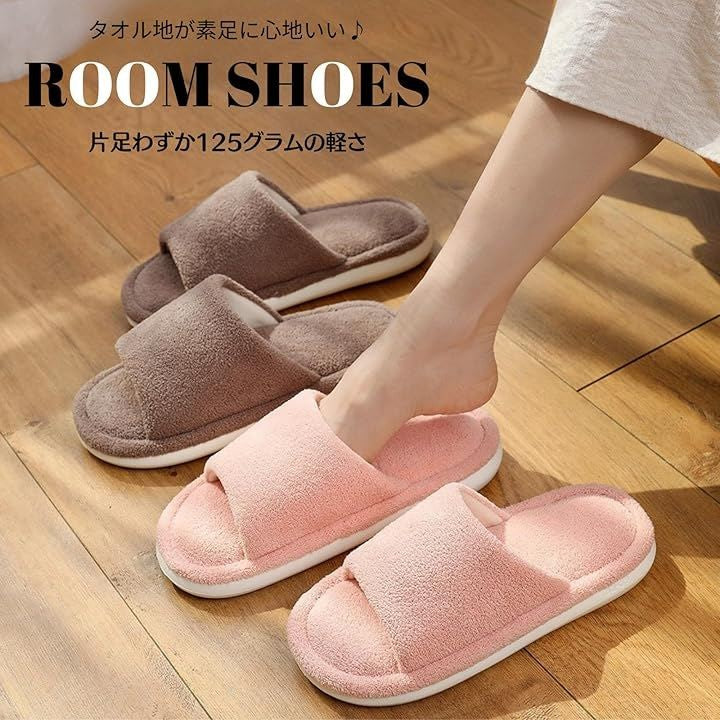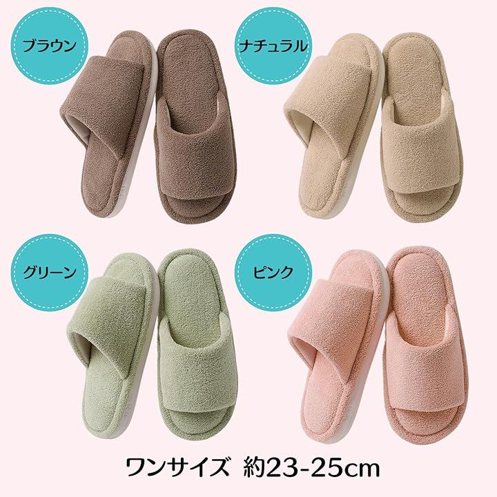 オープン トゥ ルームシューズ インドア スリッパ 室内履き 前開き タオル生地 すべり止め付き リビング キッチン 無地 シンプル レディース