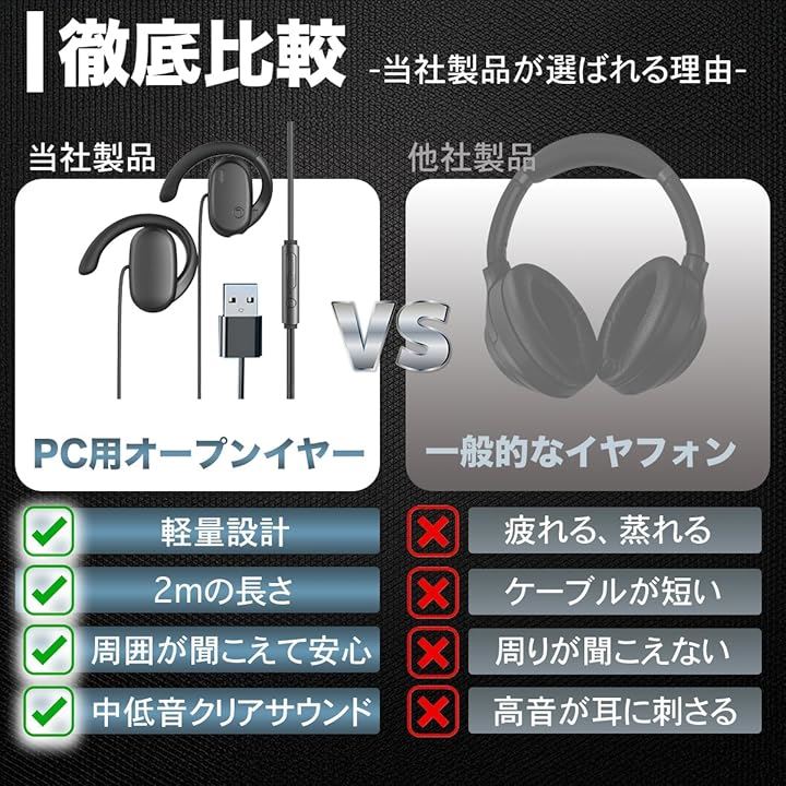 usb イヤホン web会議用イヤホンマイク パソコン用イヤホン 2m マイク付き 通話可能 音量調節 HIFI音質 テレワーク Zoom ゲーミング USB-A ポート搭載のデスクトップ対応