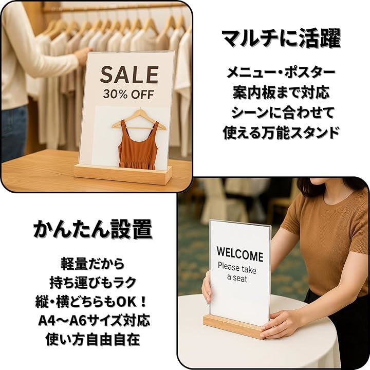 メニュースタンド アクリル 木枠 横置き 縦置き 斜め