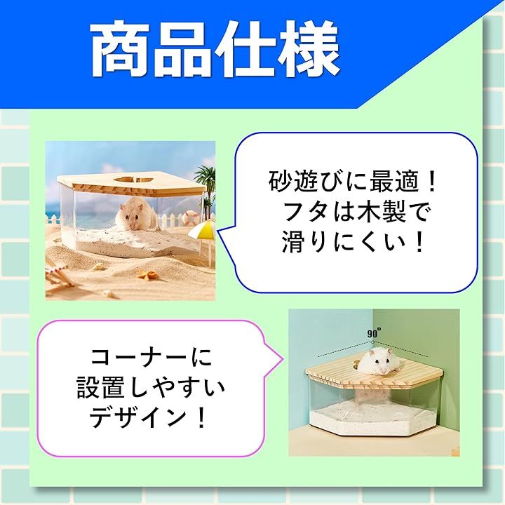 ハムスター トイレ コーナー型 クリア 小動物用 サンドバス付き 砂浴び容器 掃除簡単 飛び散り防止 おしゃれ 多機能 脱臭 ケース 小型 ペット用トイレ