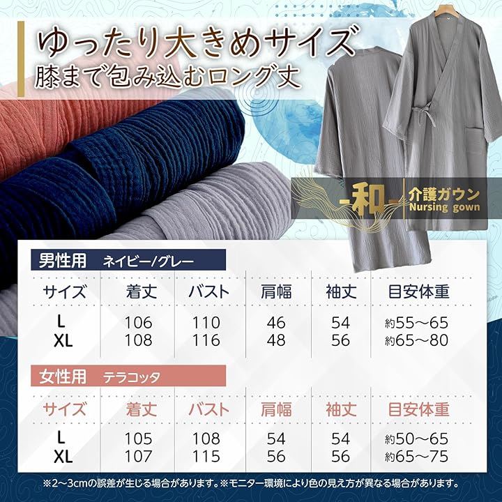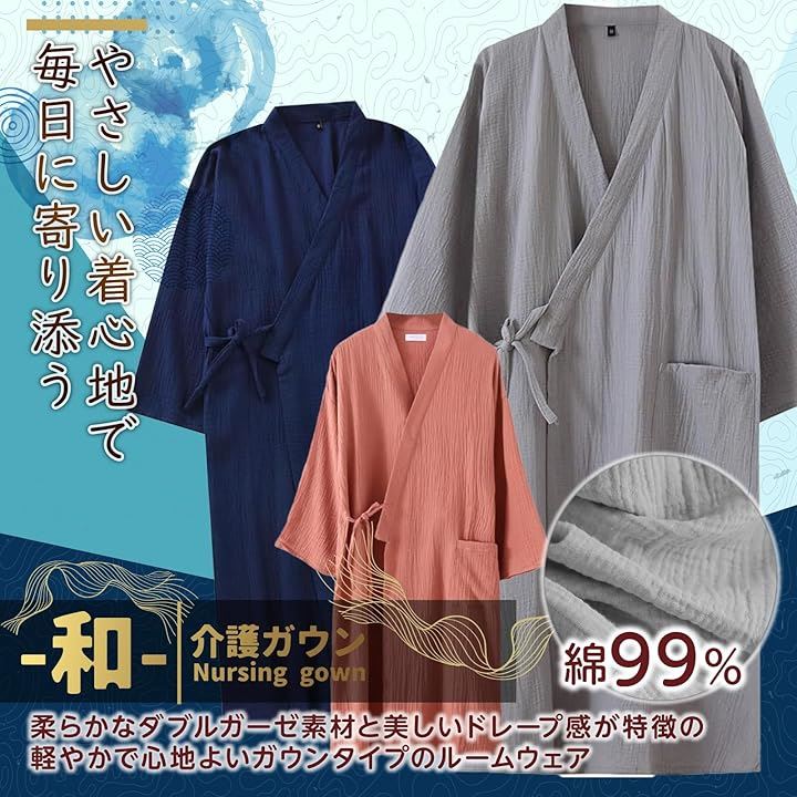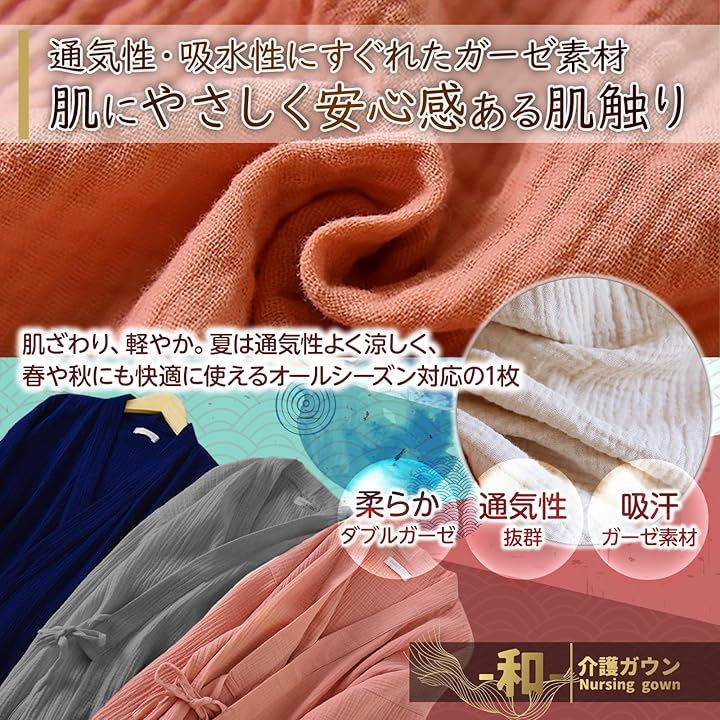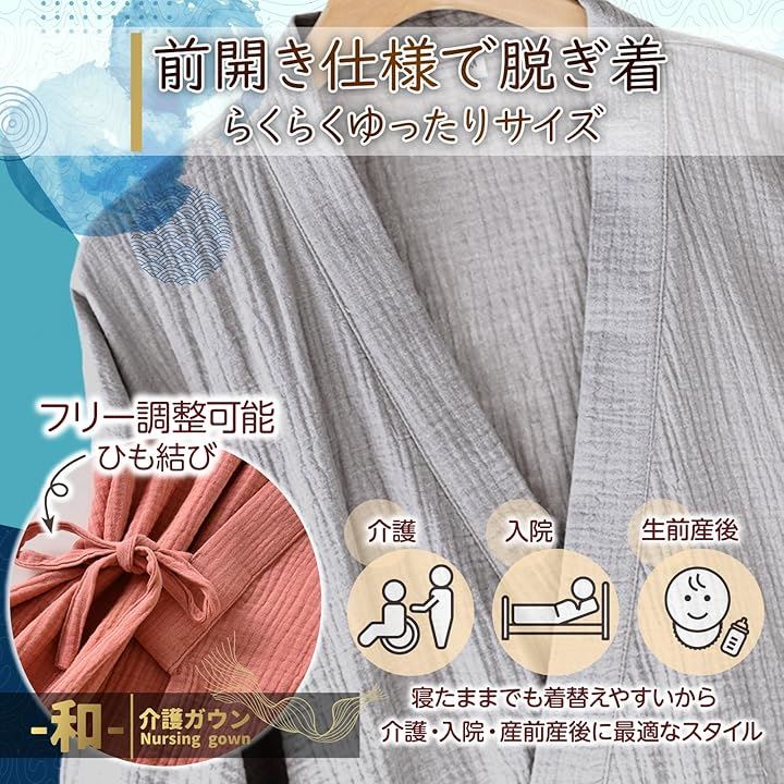 やさしさを上質に 介護パジャマ 入院着 前開きパジャマ 寝巻ガウン 素肌にやさしい 男女兼用 部屋着 Wガーゼ 吸汗吸湿