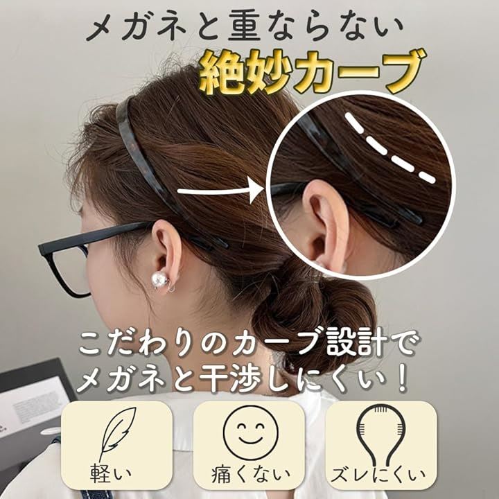 ロドリーミシェ 痛くなりにくい メガネに当たらない カチューシャ レディース 上品 軽量 ホソメ 眼鏡 ヘアバンド 痛くない 大人カジュアル オシャレ ヘッドバンド 韓国風 No78