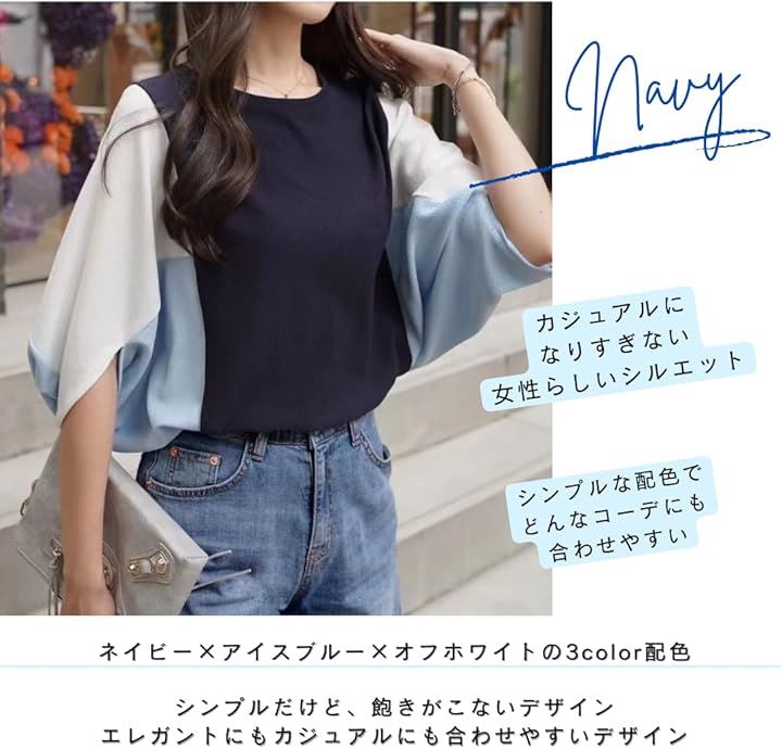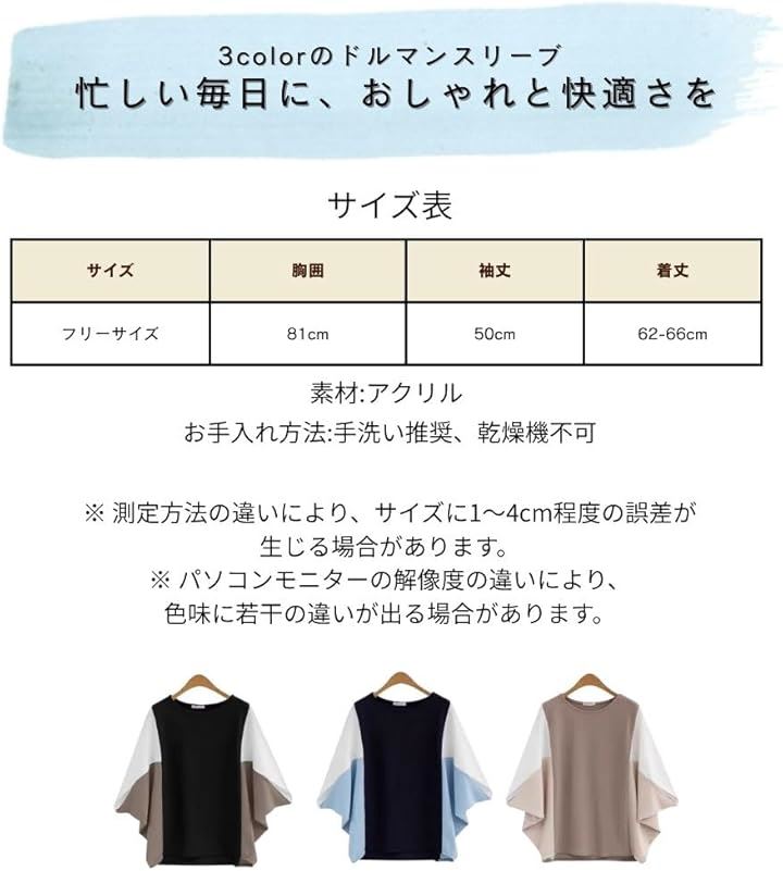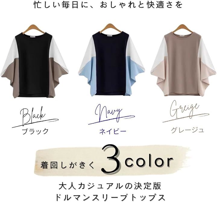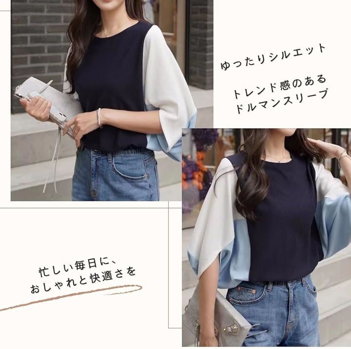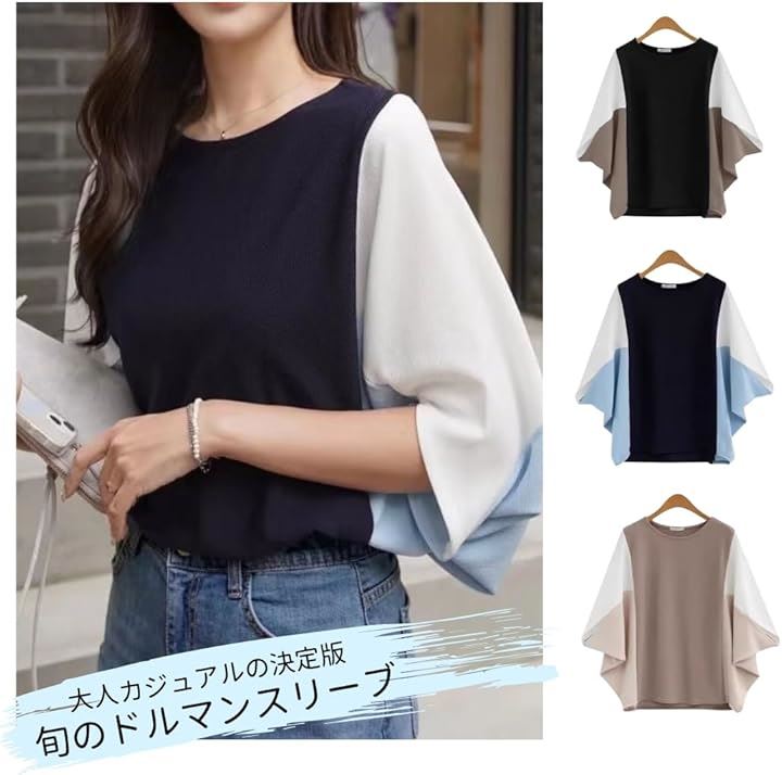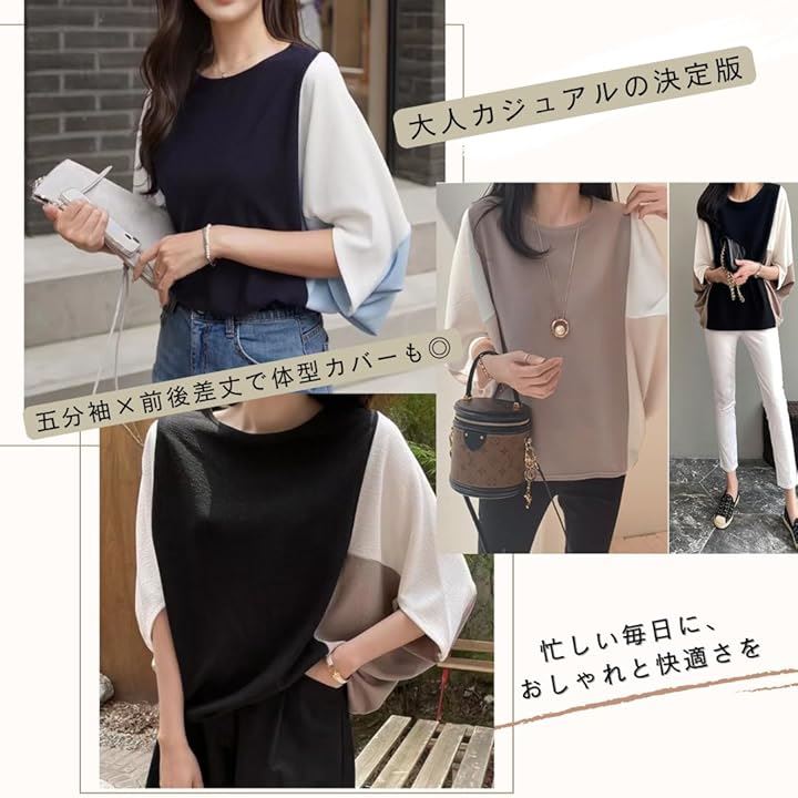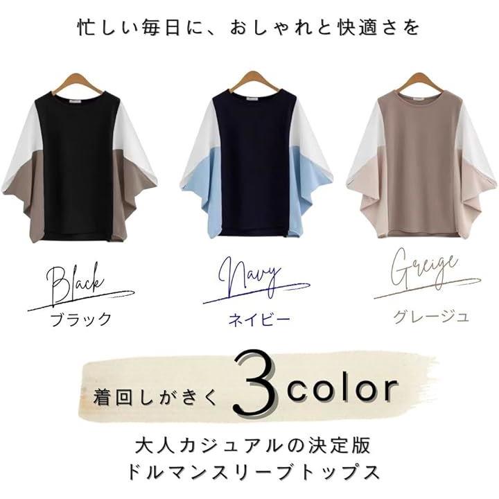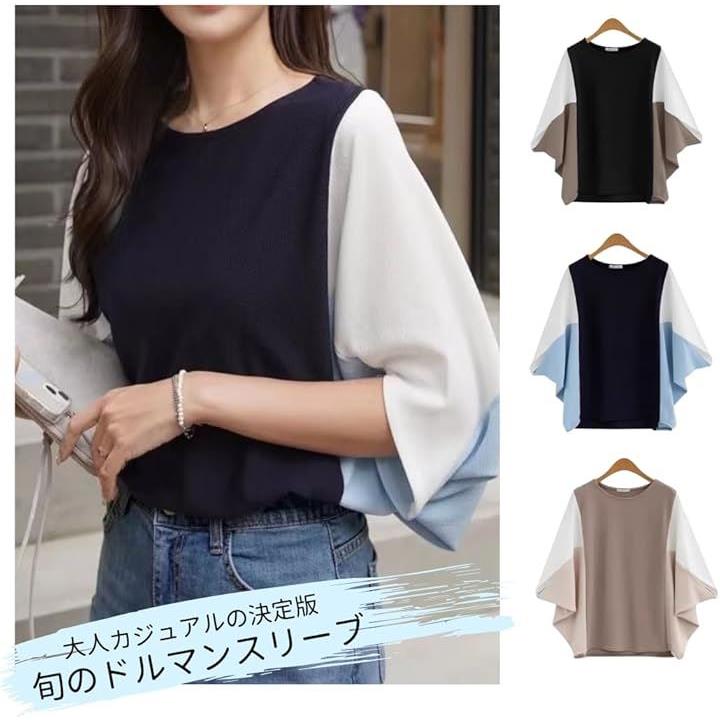 大人かわいい x 着回し力 ドルマンスリーブトップス 体型カバー 五分袖 カットソー レディース 春夏 全3色