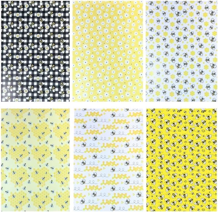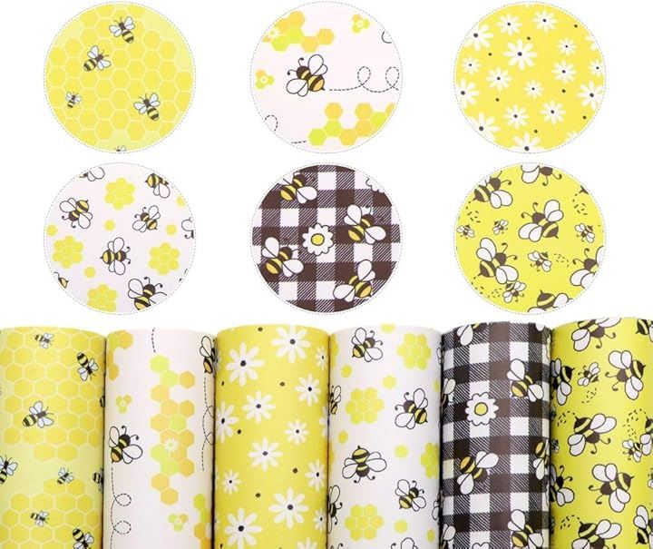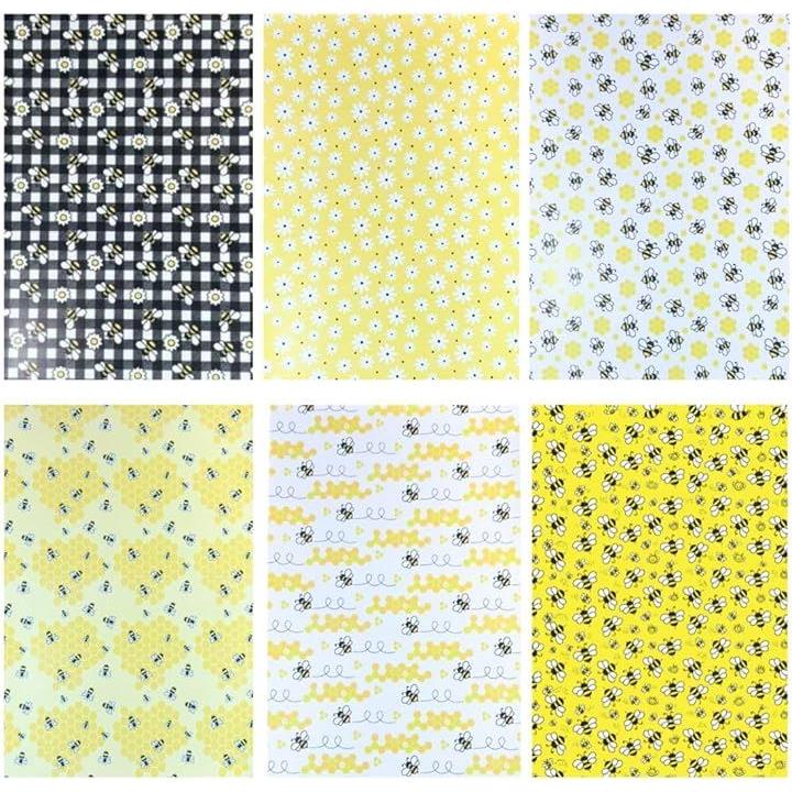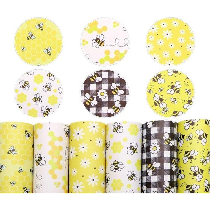 PVCレザーシート 6柄セット 蜂柄デザイン 約1mm厚 手芸用 合皮生地 ハンドメイド素材