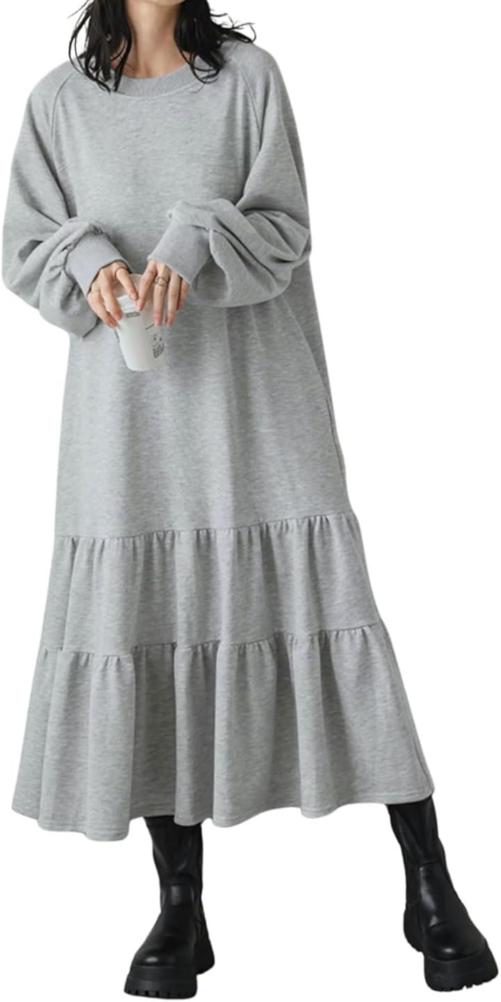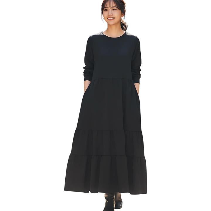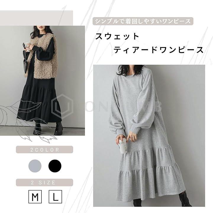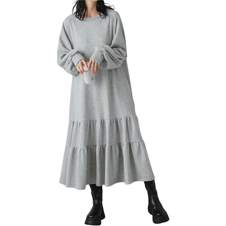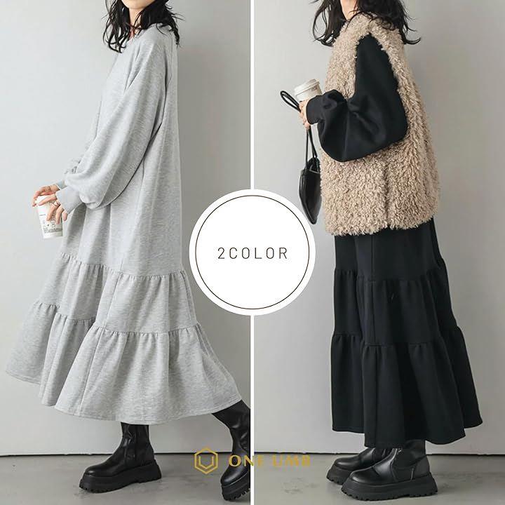 スウェットワンピース ロング 長袖 ゆったり ティアード レディース 秋冬 aラインワンピース ティアードワンピース お洒落
