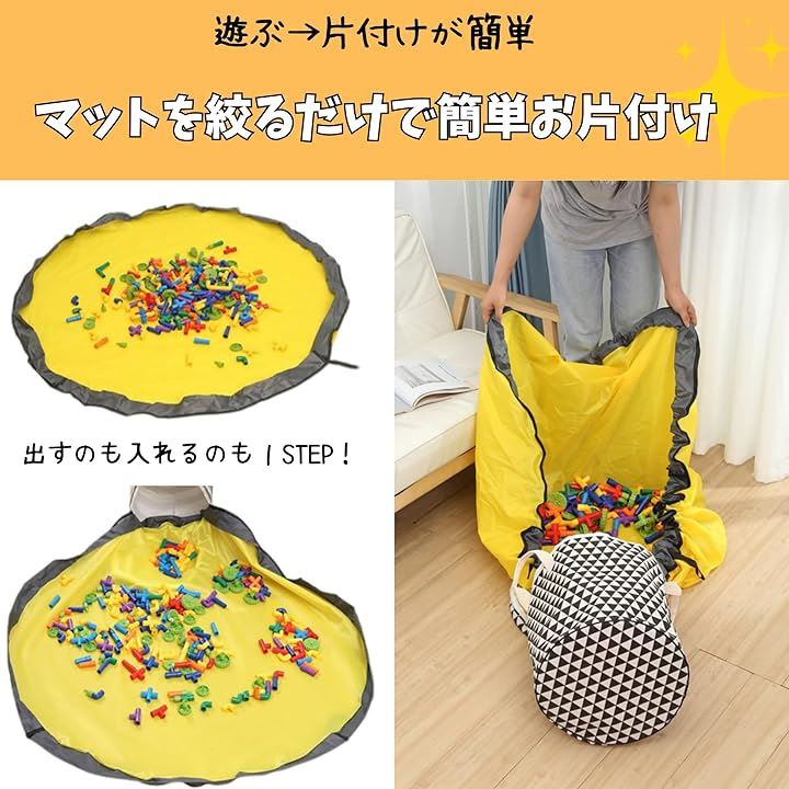 おもちゃ収納 & プレイマット 2WAYセット直径150cmお片付けマット 一体型 収納ボックス 収納バケツ おもちゃ箱 簡単お片付け 巾着式 ブロック ぬいぐるみ おままごと