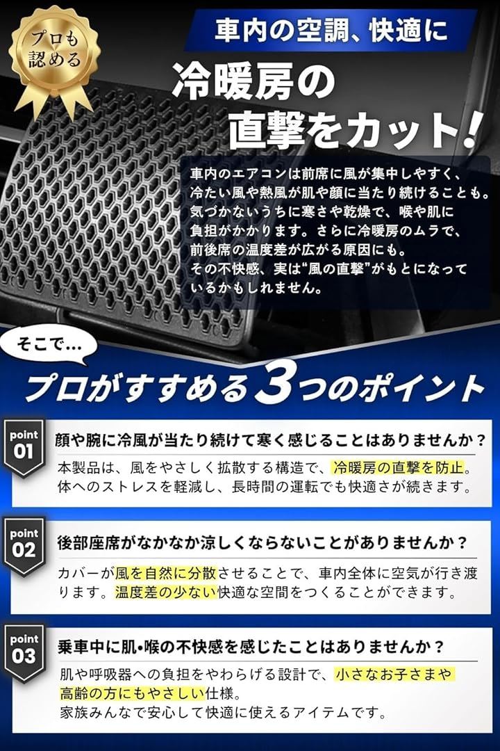 冷たい風が直接当たらない 車用 風よけ エアコンカバー ルーバー カーエアコン 冷えすぎ対策 空気循環 直撃防止 エアコンベント 直風対策