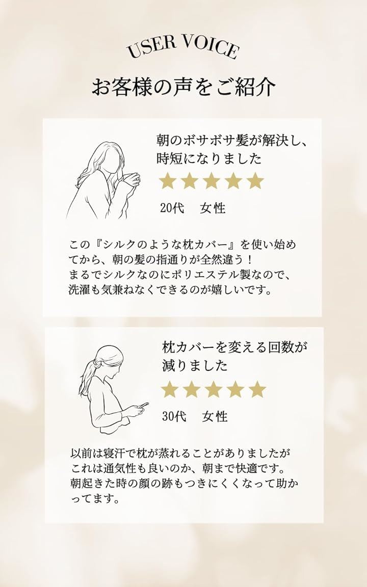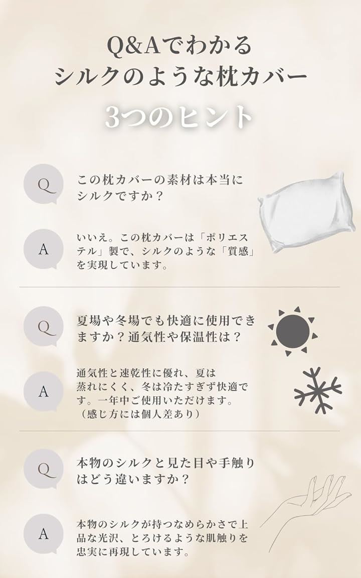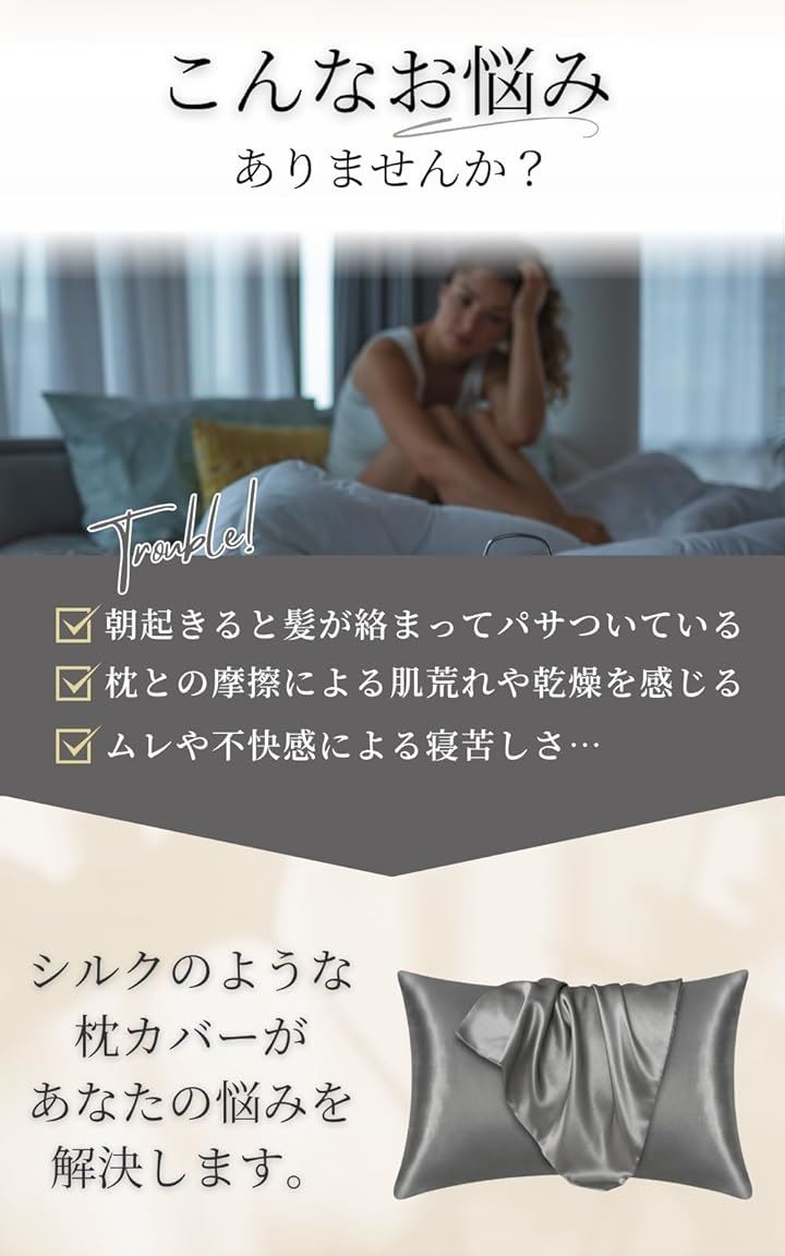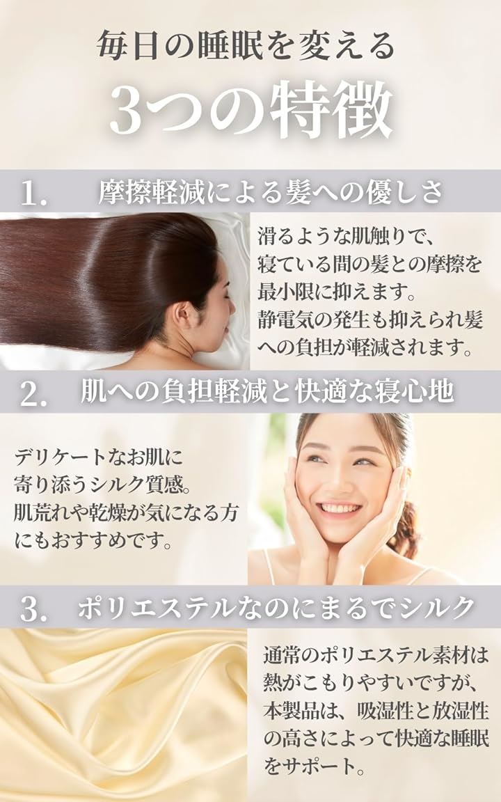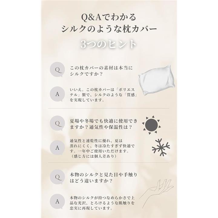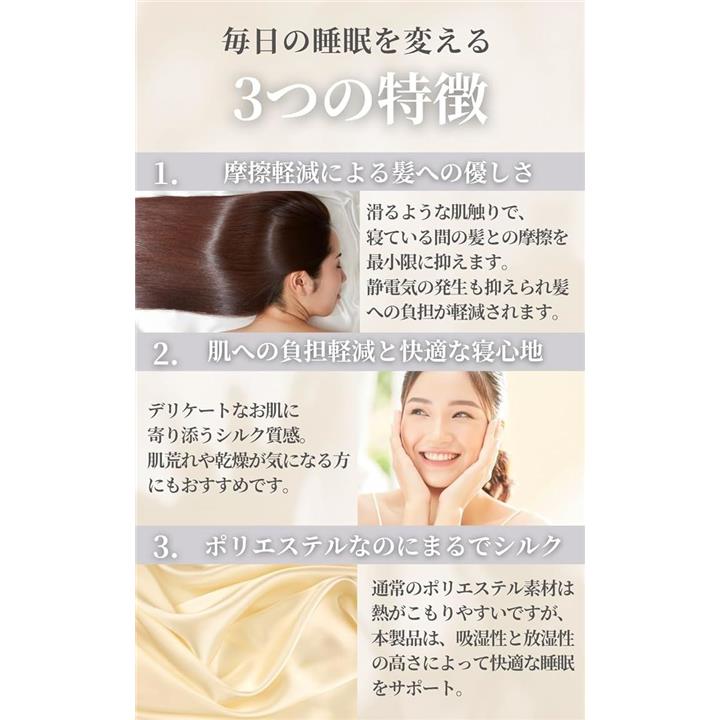 シルクのような枕カバー ポリエステル製 ピローケース 美髪 美肌 洗える 敏感肌に優しい 摩擦軽減 抗菌防臭