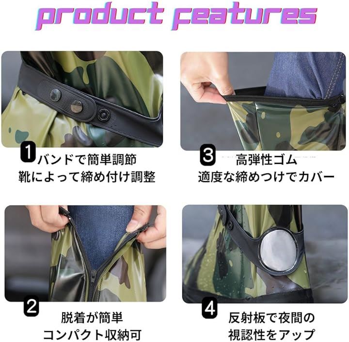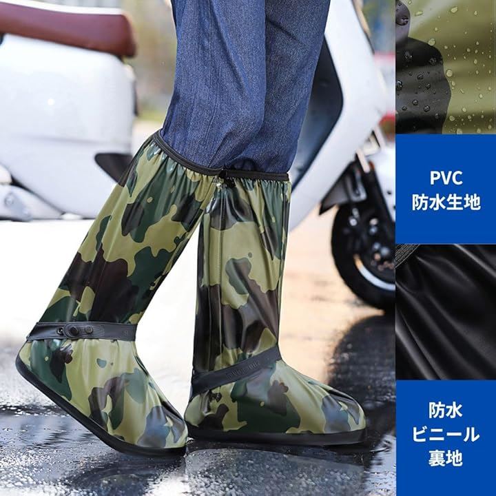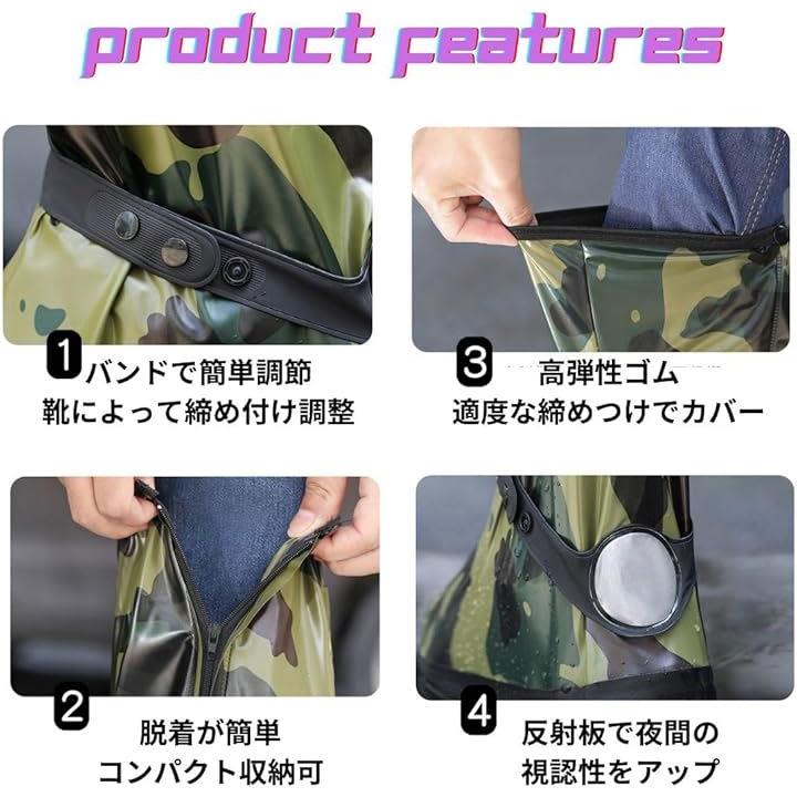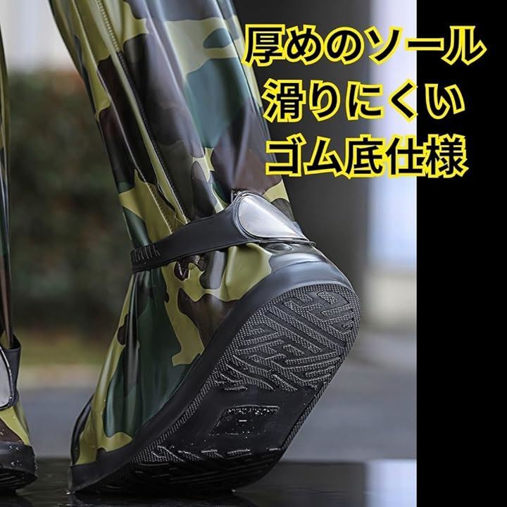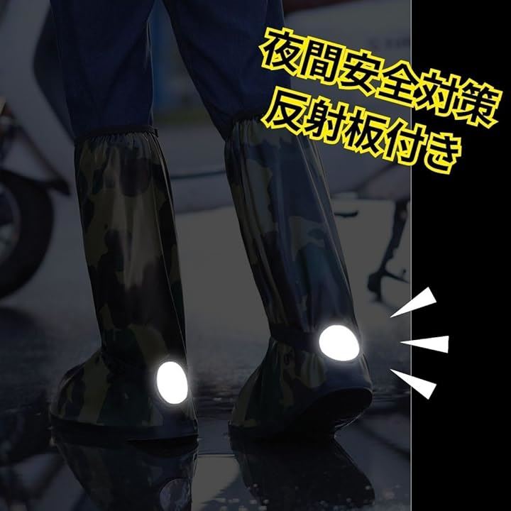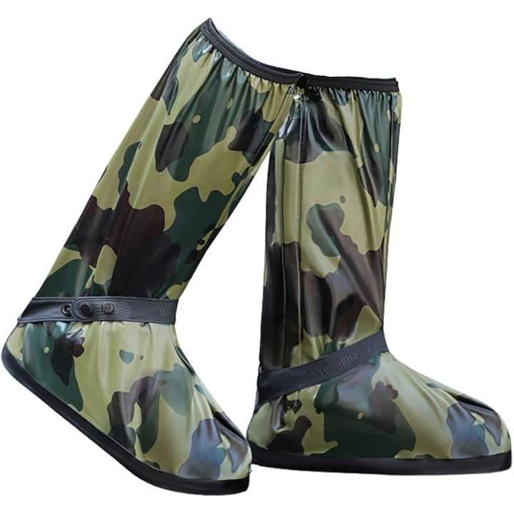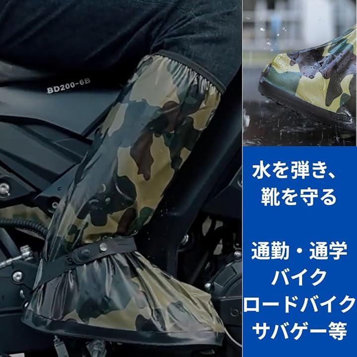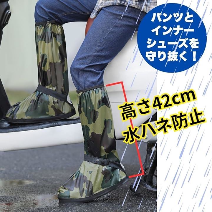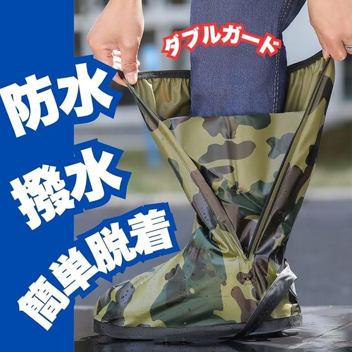 防水 シューズ カバー メンズ ロード バイク レイン ブーツ ロング 滑らない 雨天 靴 迷彩