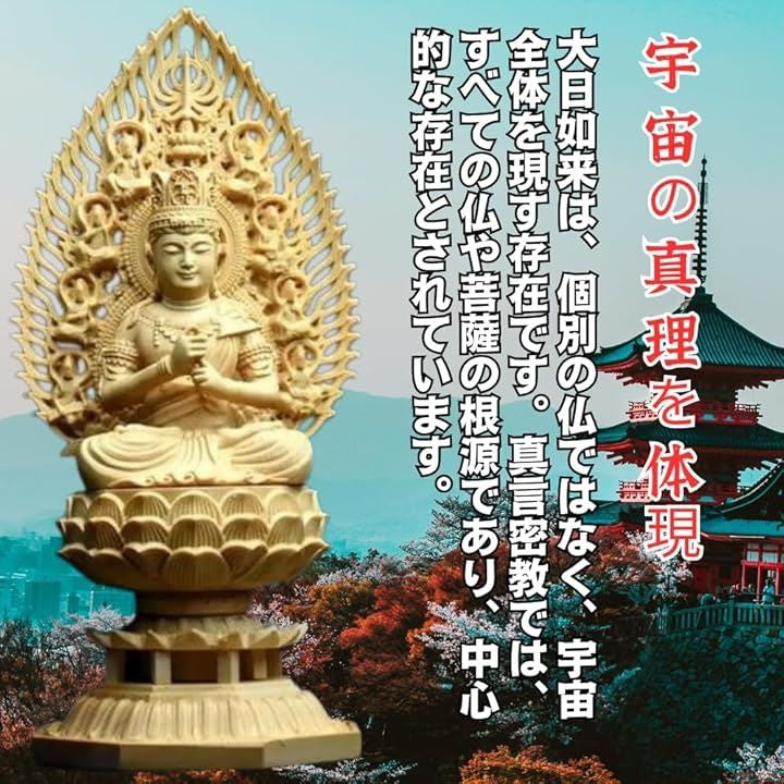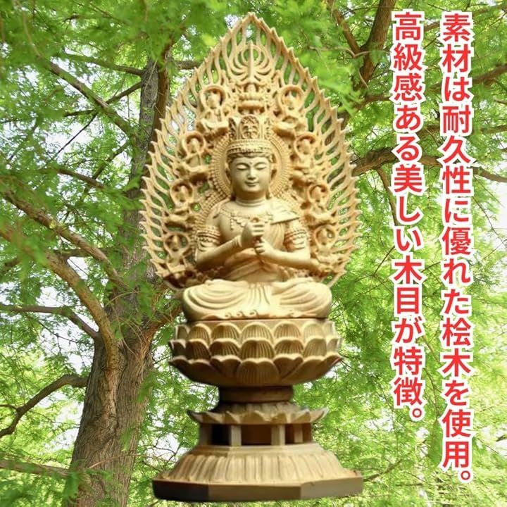 仏像 大日如来 真言宗 仏具 木彫り 桧木製 飛天光背 八角台座 悩み 祈る 厄除け 御利益 功徳