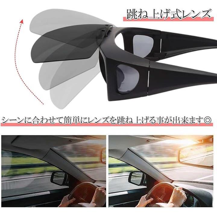 オーバーサングラス レンズ 跳ね上げ オーバーグラス 偏光 カバーグラス スポーツ アウトドア UVカット