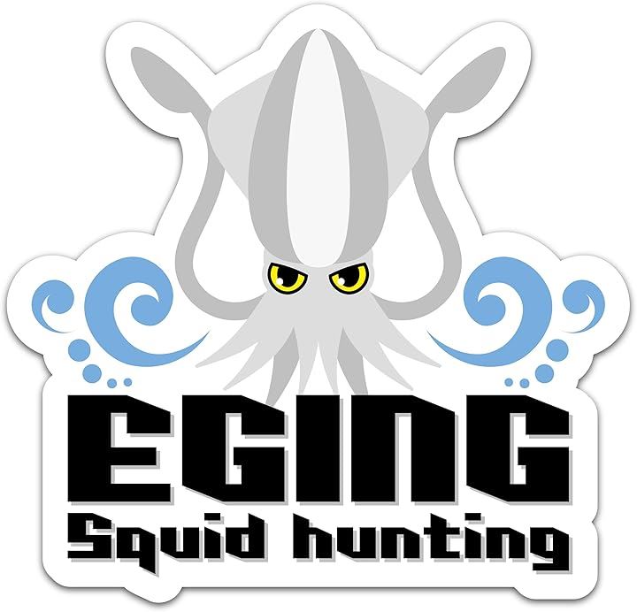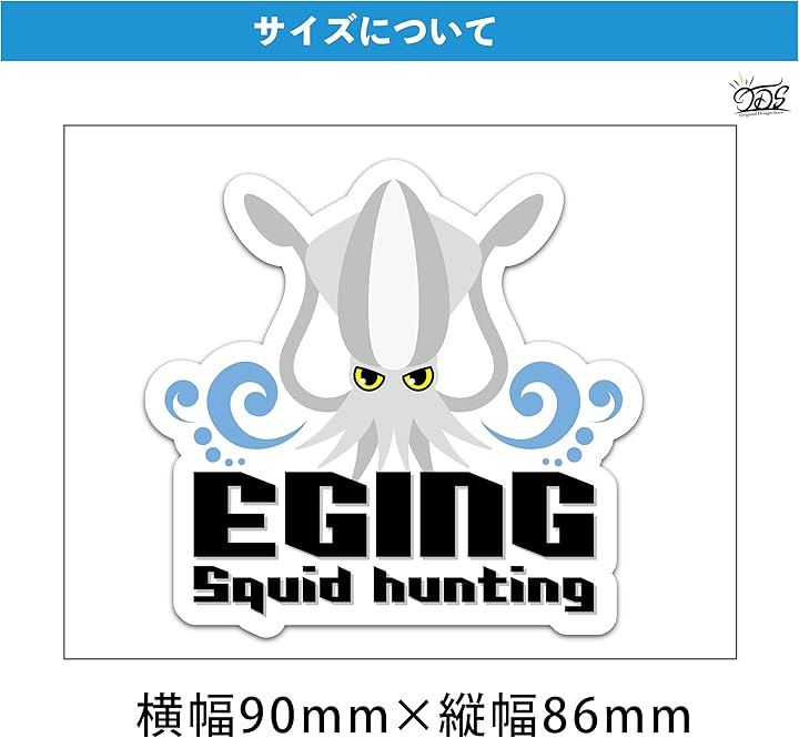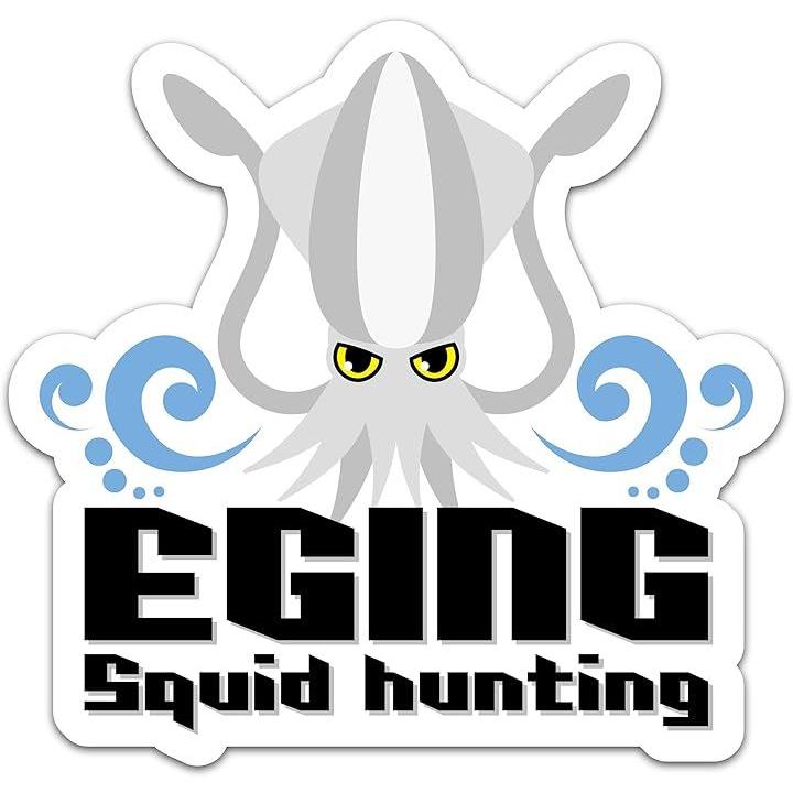 EGING squid hunting 釣りステッカー フィッシング キャンプ アウトドア用ステッカー シール W90mmxH86mm クーラーボックス イカ 車用 バイク用