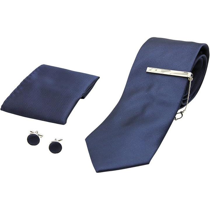 ネクタイ 4点セット メンズ タイピン カフス チーフ ネイビー フォーマル ビジネス ギフトボックス
