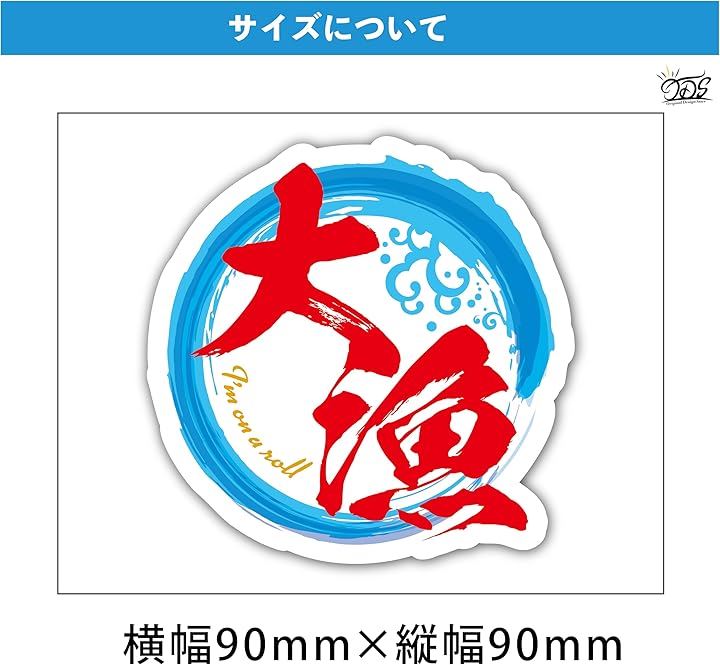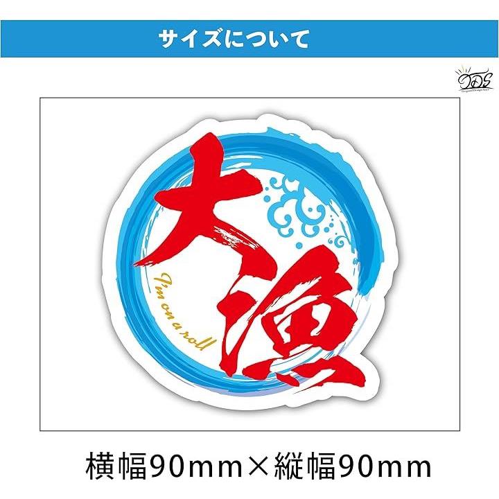 大漁 釣りステッカー フィッシング キャンプ アウトドア用ステッカー シール W90mmxH90mm クーラーボックス 車用 バイク用 屋外 防水
