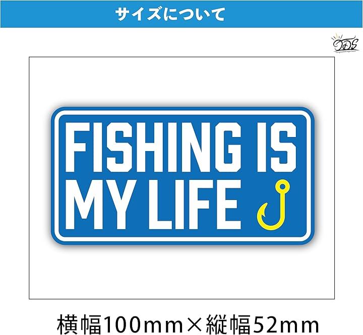 FISHING MY LIFE 釣りステッカー フィッシング キャンプ アウトドア用ステッカー シール W100mmxH52mm クーラーボックス 車用 バイク用