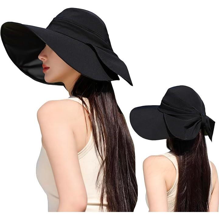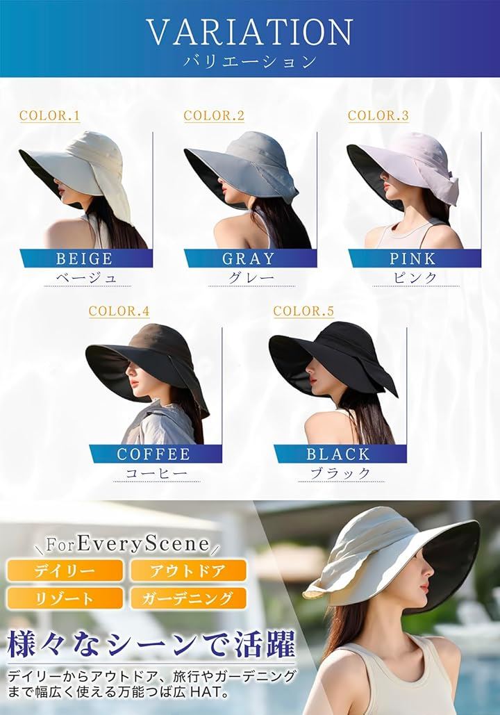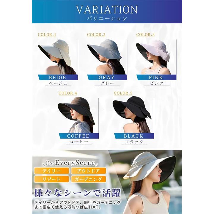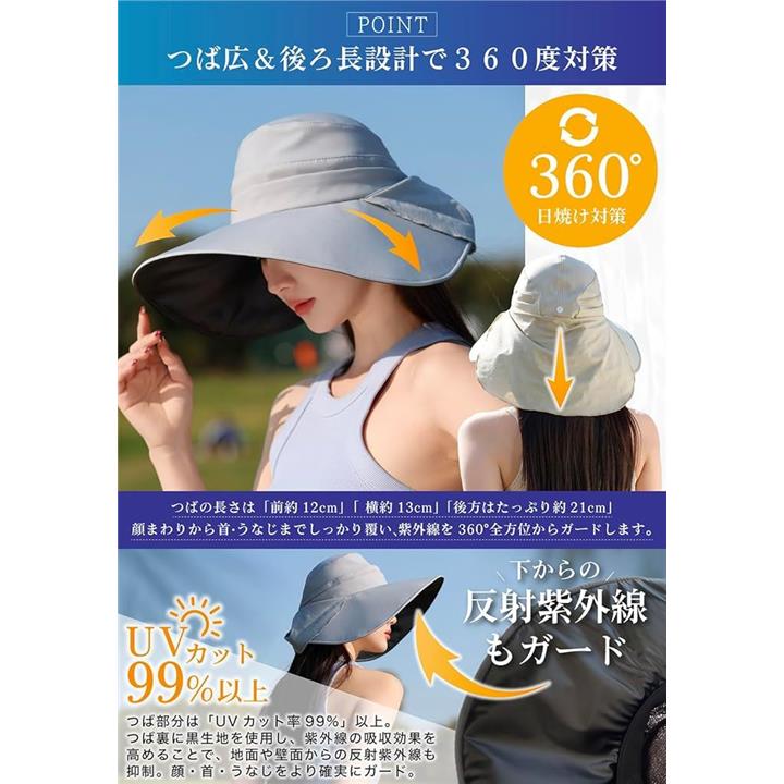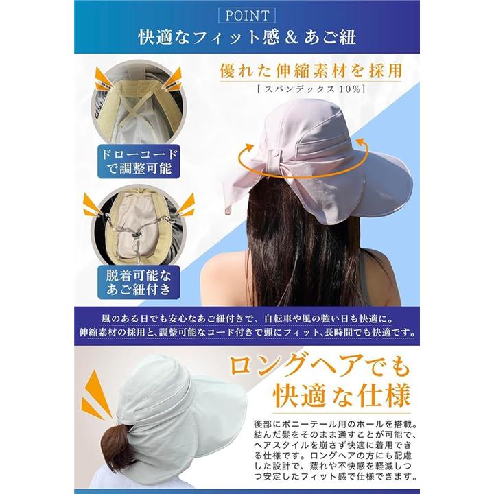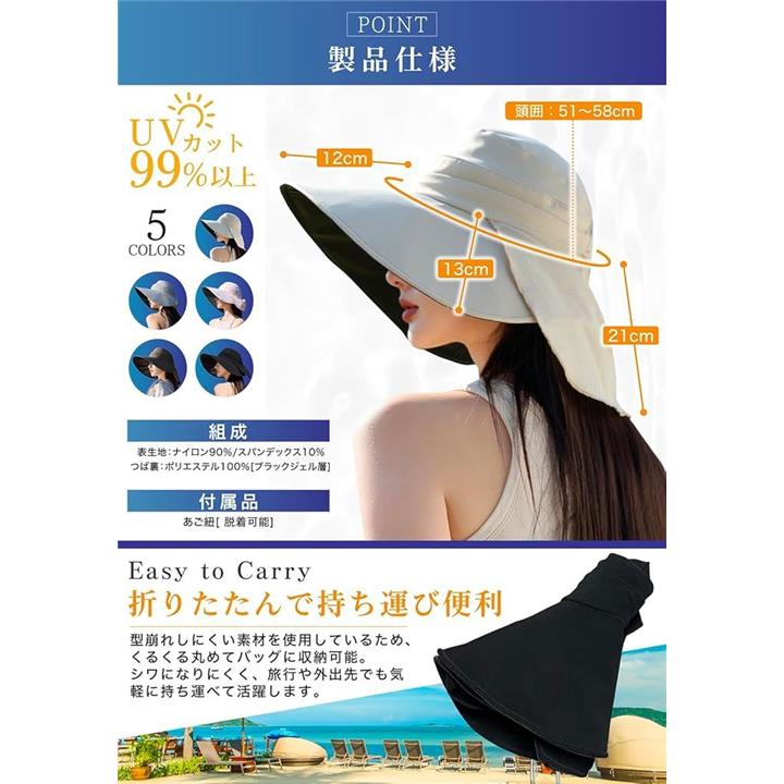 日よけ 帽子 つば広 遮光 紫外線 UVカット 日焼け防止 あごひも サンバイザー