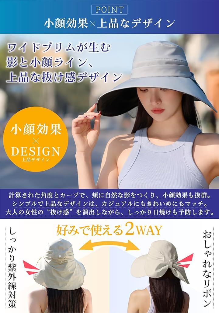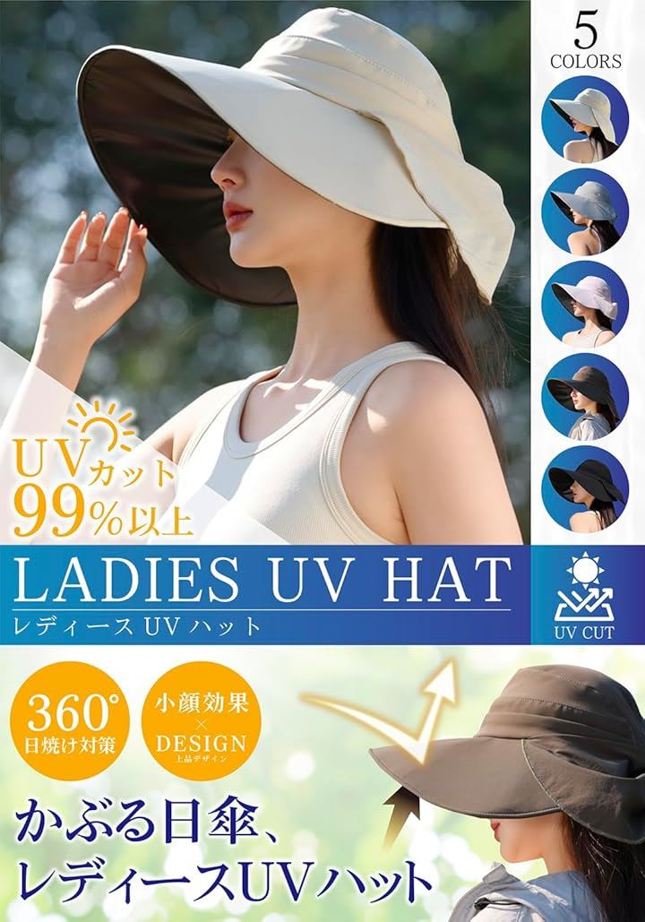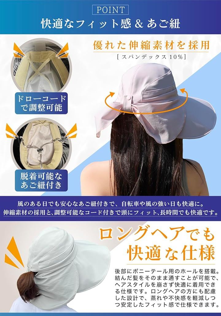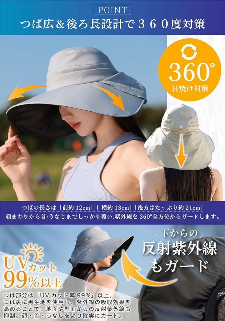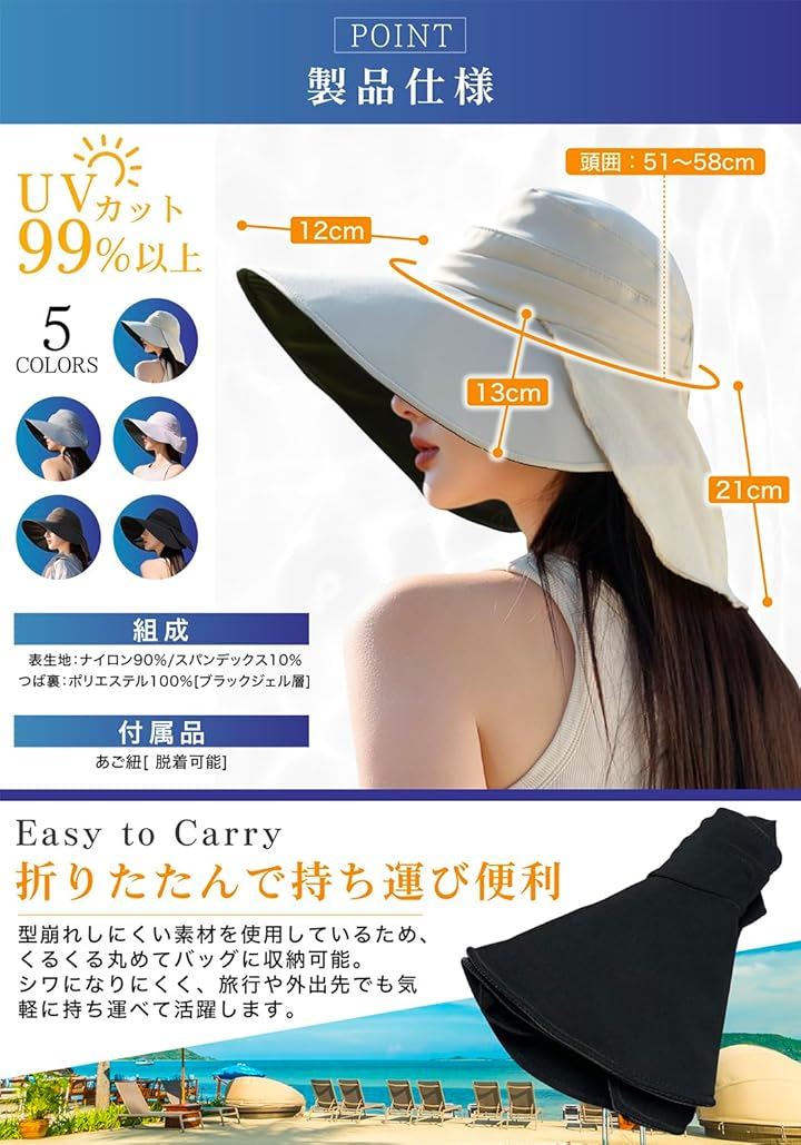 日よけ 帽子 つば広 遮光 紫外線 UVカット 日焼け防止 あごひも サンバイザー
