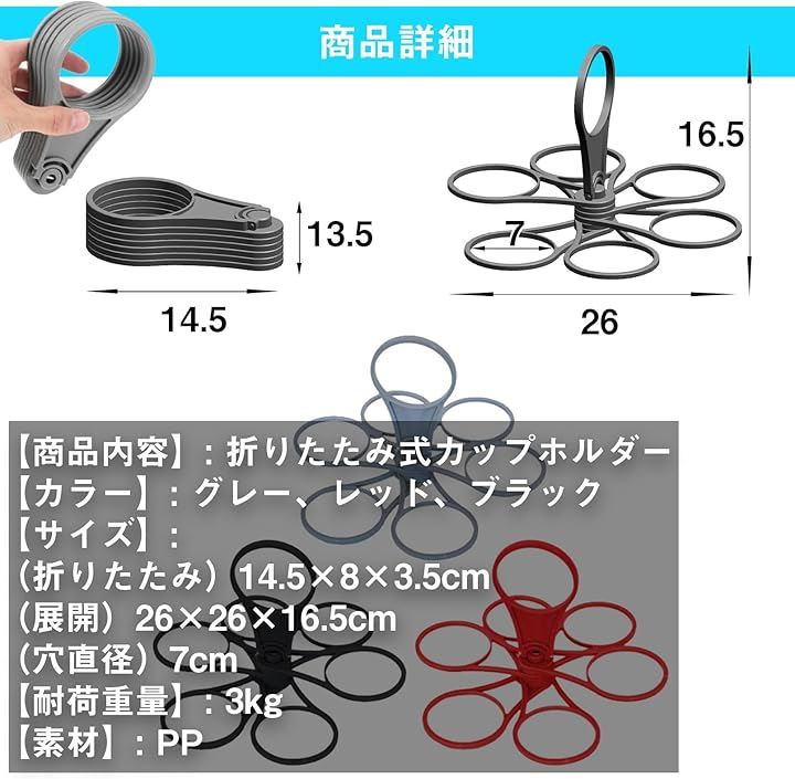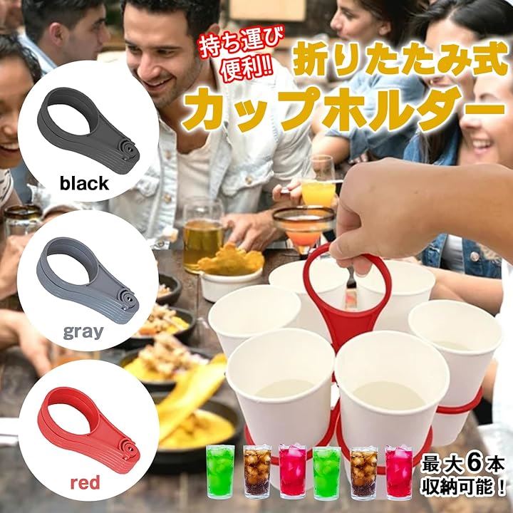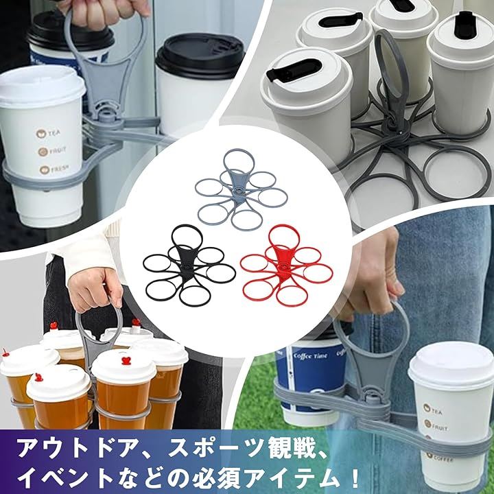 折りたたみ式 カップホルダー 持ち歩き ドリンク キャリー 軽量 スポーツ観戦 ピクニック 6杯