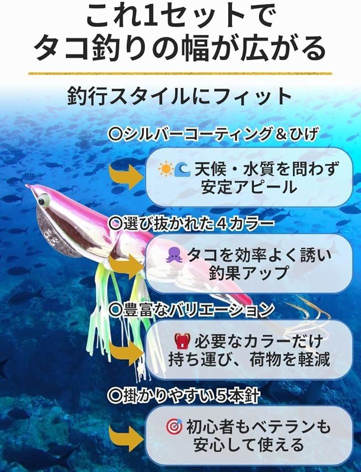 タコエギ ルアー エギング セット 釣り 仕掛け 25g 5本針 餌木 堤防 磯 船