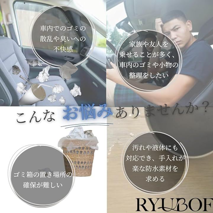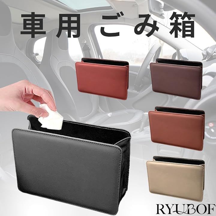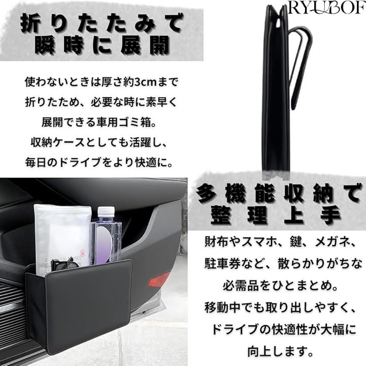 車用ゴミ箱 折りたたみ 小型 収納ボックス 防水PU 多機能収納 ドアポケット/助手席/後部座席対応 コンパクト車内整理ケース 省スペース 簡単設置 おしゃれデザイン ゴミ袋対応 小物収納