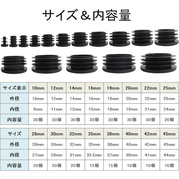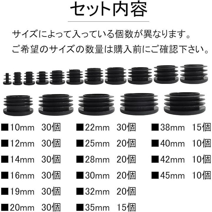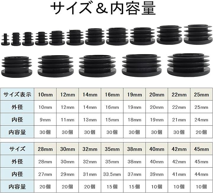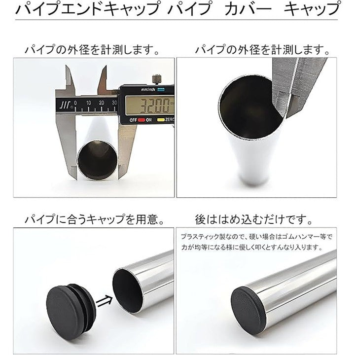 外径10mmから45mmまで、幅広いサイズのパイプエンドキャップをご用意しました。