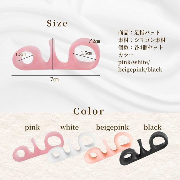 つま先パッド 4個セット 足元リフレッシュ 足元ケア 快適フィット シリコン素材 洗えるタイプ 男女兼用 両足用 簡単着脱 フリーサイズ