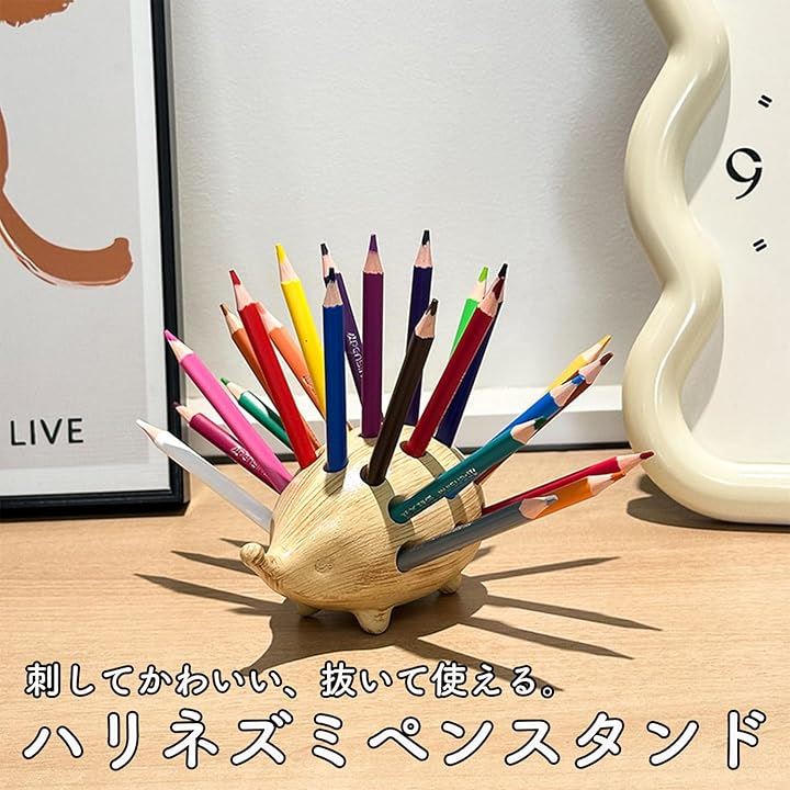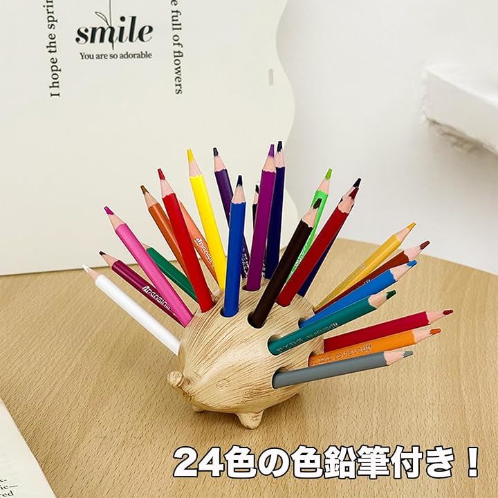 ハリネズミ ペンスタンド 色鉛筆 24本付き ペン立て 色鉛筆立て 文房具 収納 かわいい 卓上 デスク 整理 整頓 おしゃれ インテリア 子供 プレゼント 誕生日