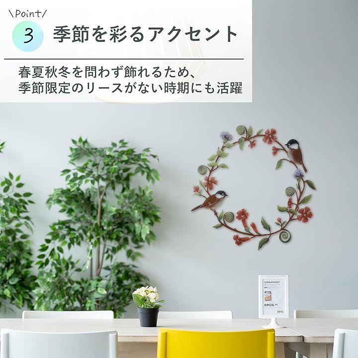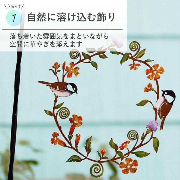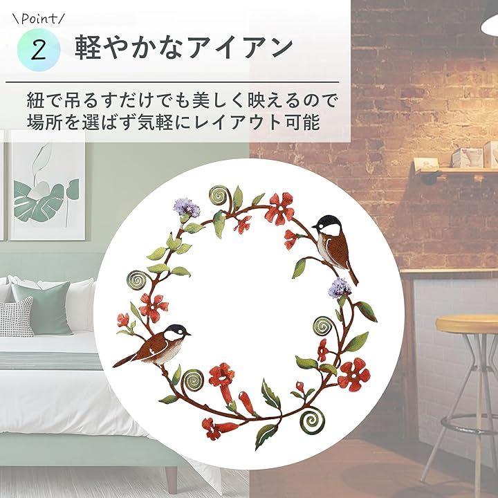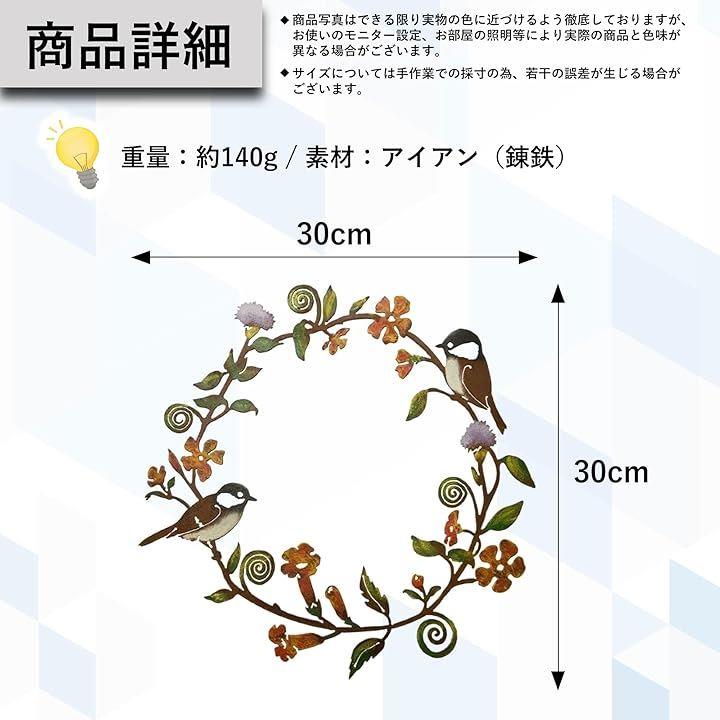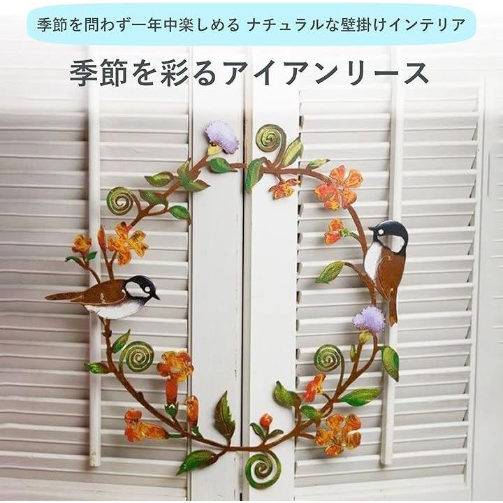 アイアンリース 壁掛け アンティーク インテリア 装飾 玄関 ガーデン 北欧 小鳥 草花 模様 ラウンド デザイン ドアリース ナチュラル レトロ