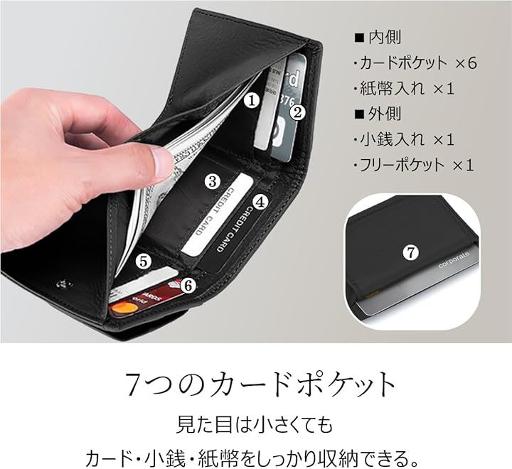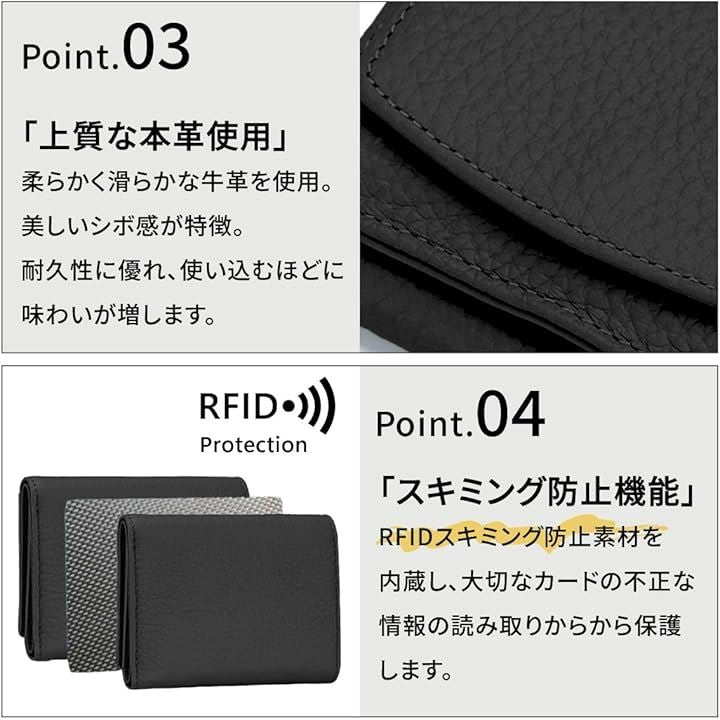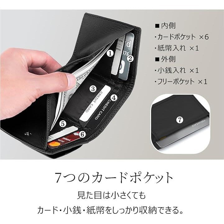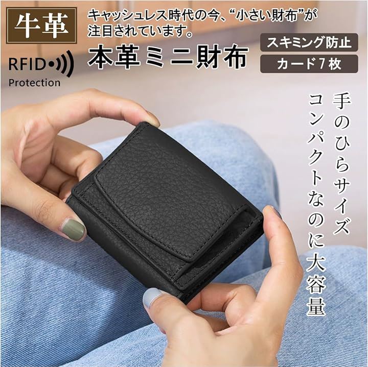 本革ミニ財布 三つ折り スキミング防止 小さい財布 軽量 小銭入れ付