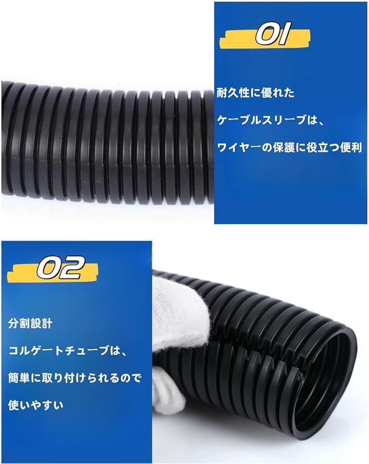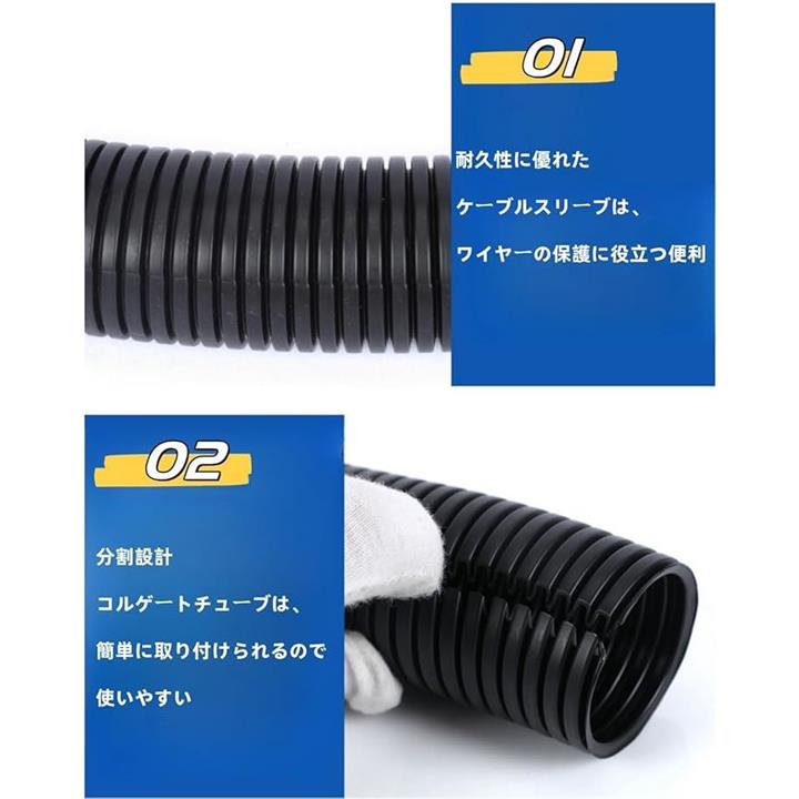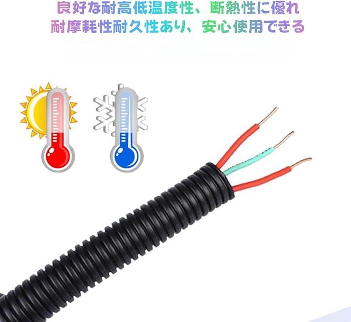 配線チューブ 内径13mm 10m コルゲート ケーブル収納スリーブ 配線カバー ワイヤスリーブ 配線モール PPチューブ ケーブルプロテクター コード 整理 ペットコード噛み防止