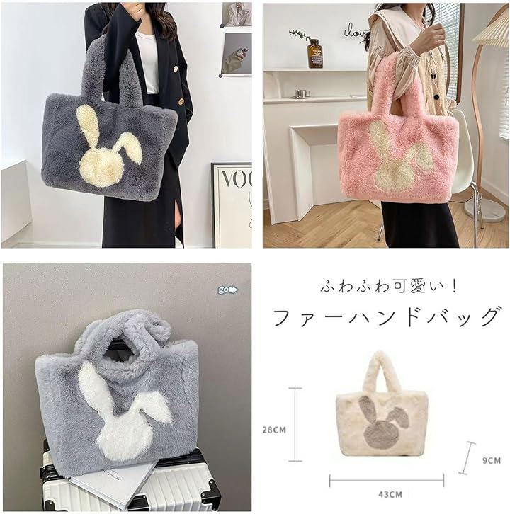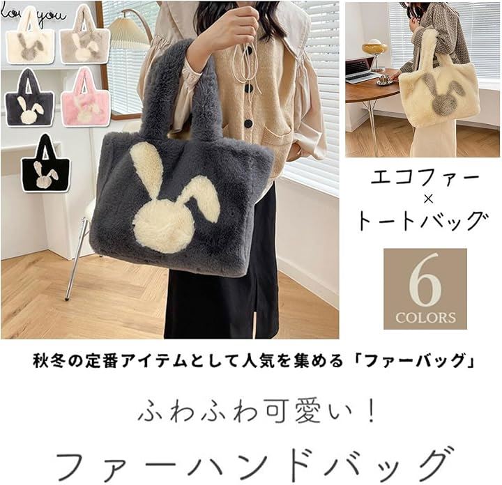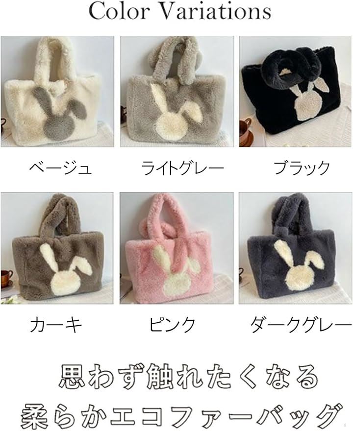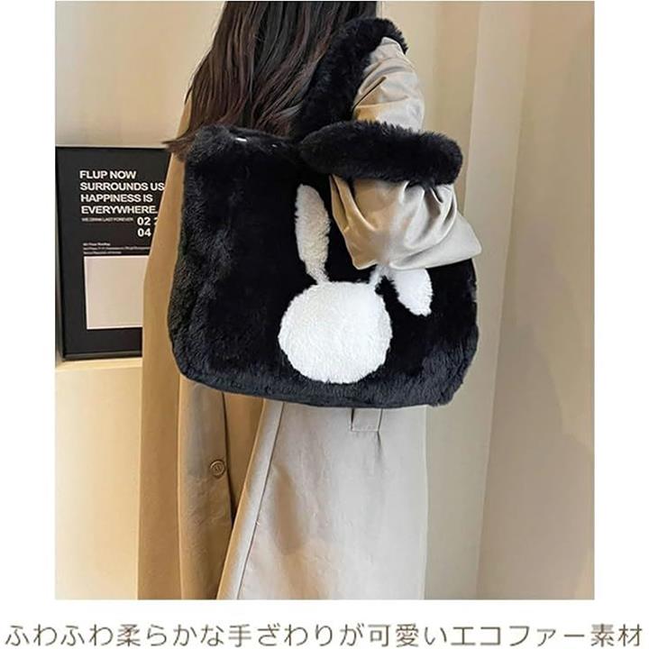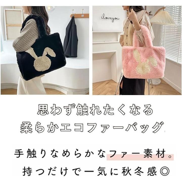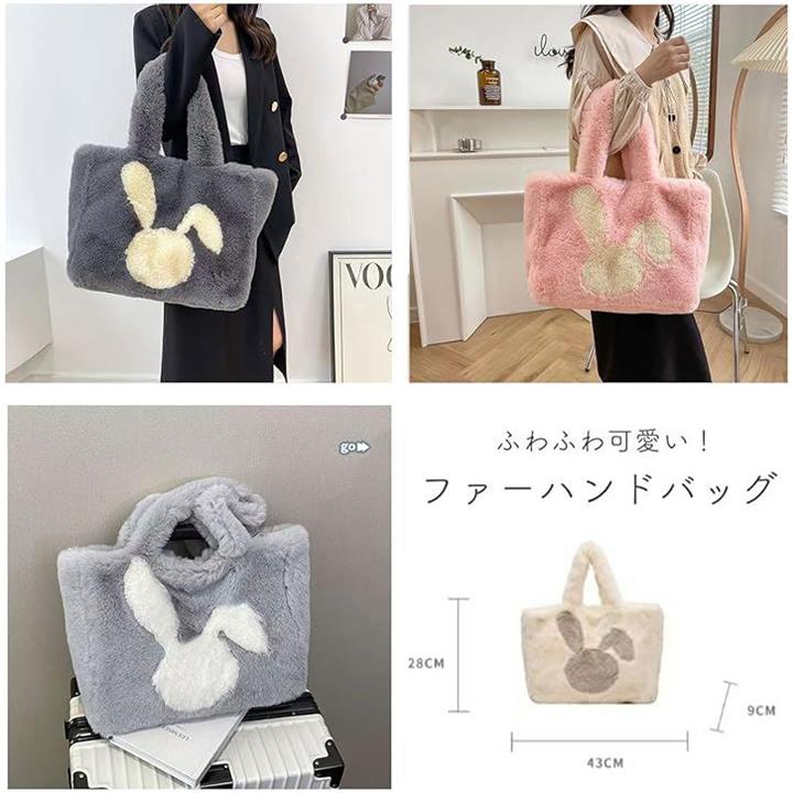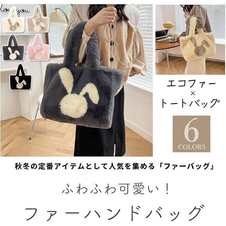 トートバッグ ファー うさぎ 柄 ふわふわ もこもこ レディース エコファー ラビット 可愛い 手提げ 大容量 ボア 軽量 ウサギ 6カラー モコモコ フワフワ 旅行 サブバッグ 鞄