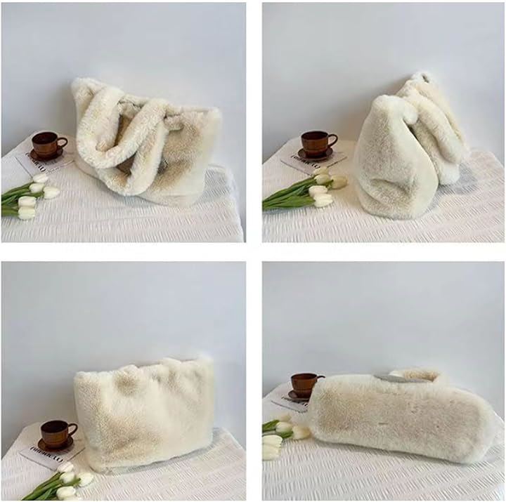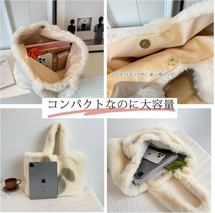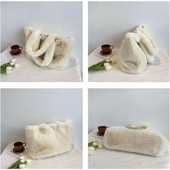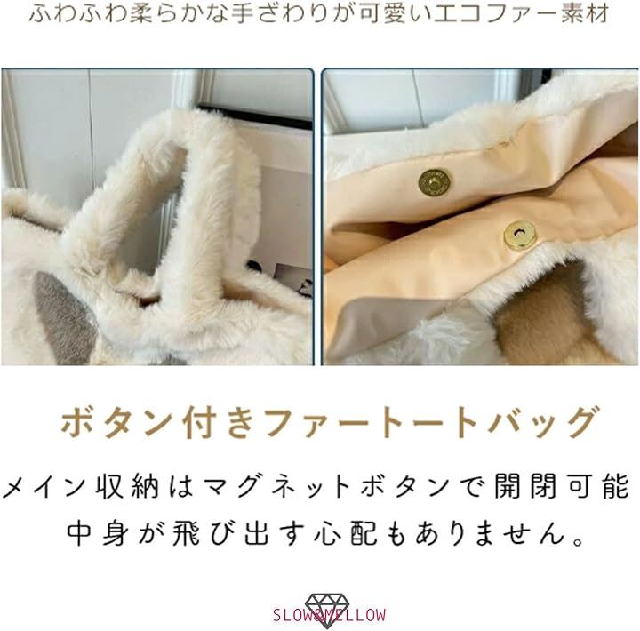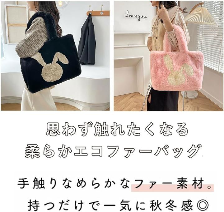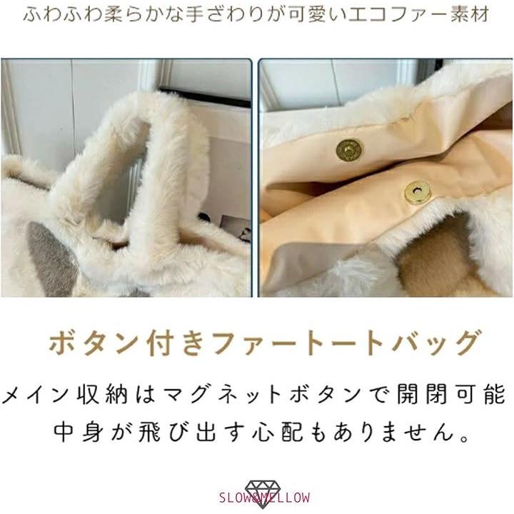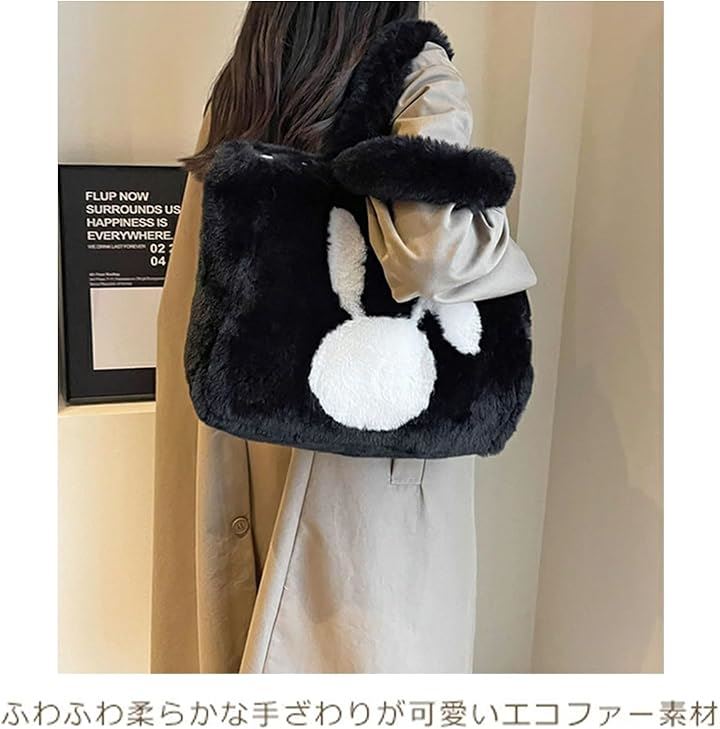 トートバッグ ファー うさぎ 柄 ふわふわ もこもこ レディース エコファー ラビット 可愛い 手提げ 大容量 ボア 軽量 ウサギ 6カラー モコモコ フワフワ 旅行 サブバッグ 鞄