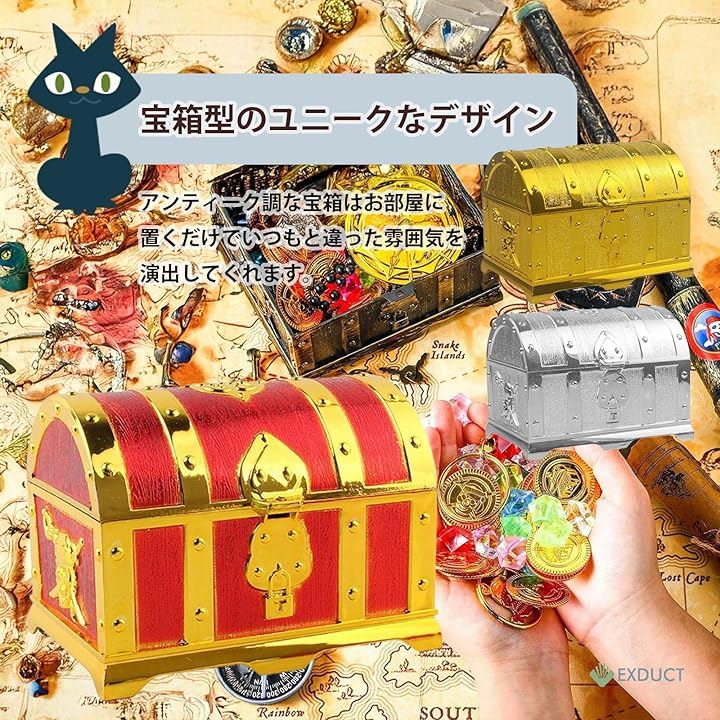 宝箱 小物入れ 収納箱 海賊風 おもちゃ箱 レトロ アンティーク風 宝石箱 収納ボックス 貯金箱