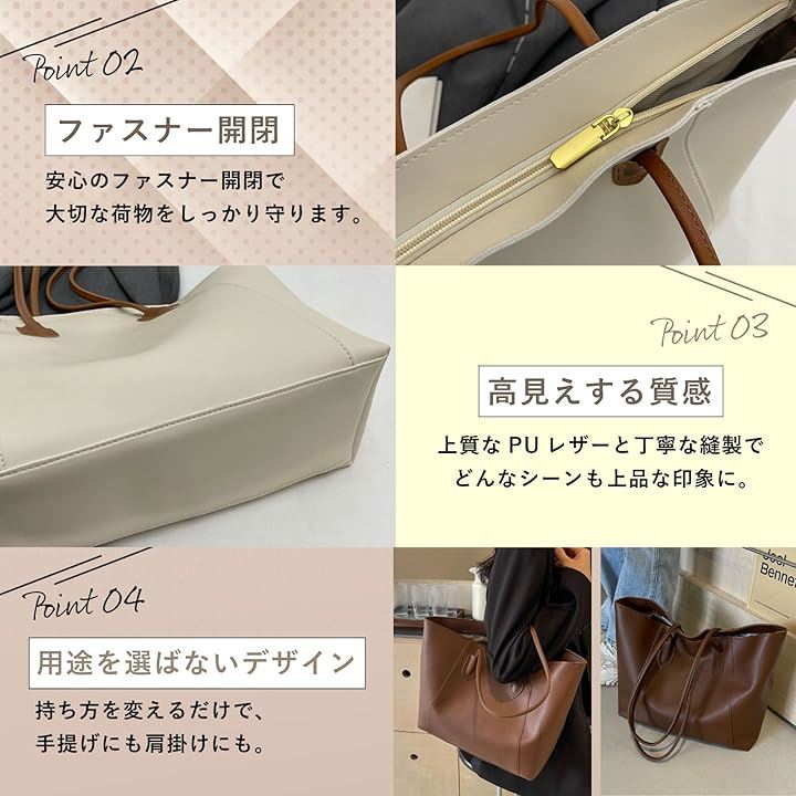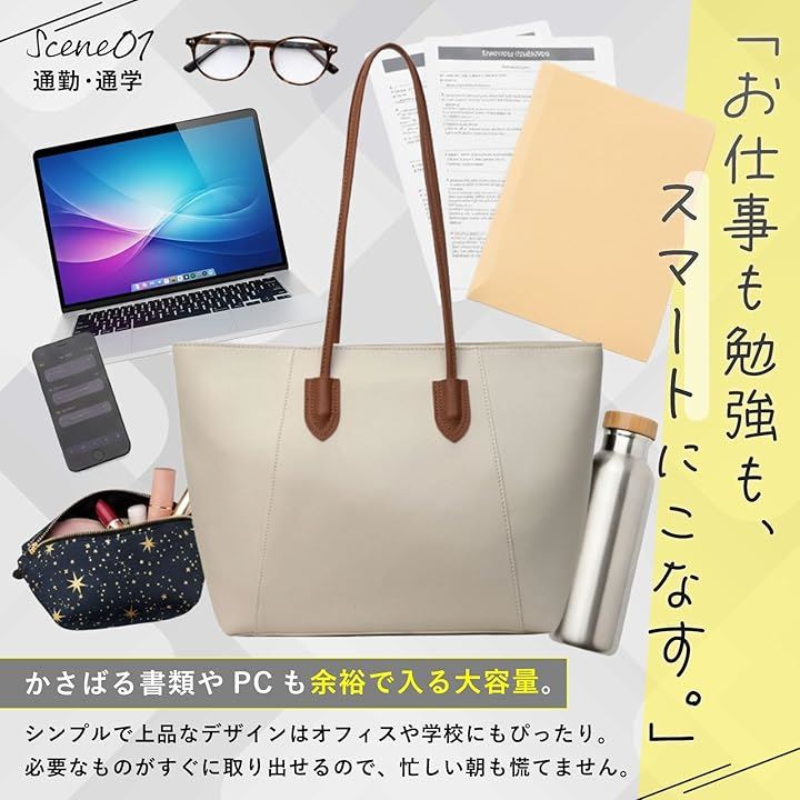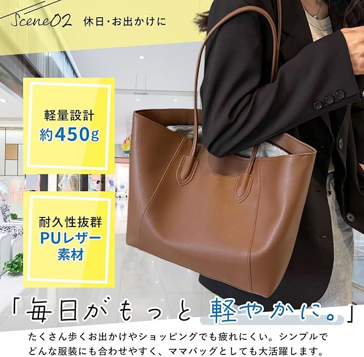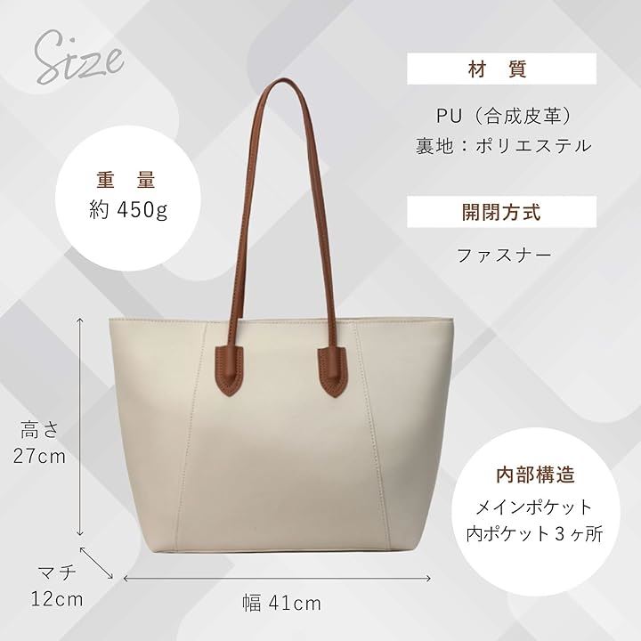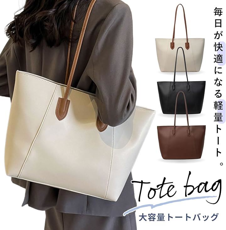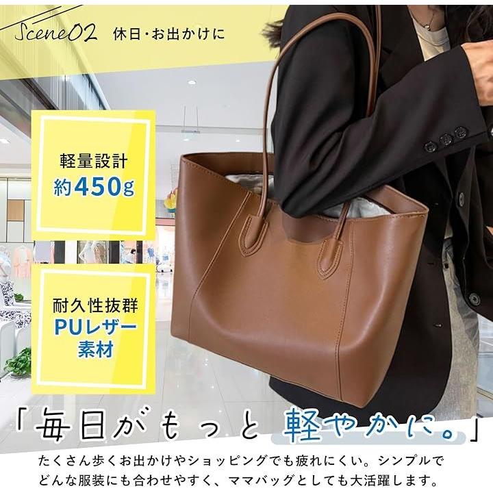トートバッグ レディース 大容量 スクエア PU 通勤 通学 A4 PC 収納 旅行 マザーズバッグ 肩掛け 軽量