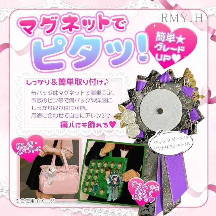 ロゼット 缶バッジ リボン 痛バッグ用 デコレーション 可愛い 推し活 ロリータ風