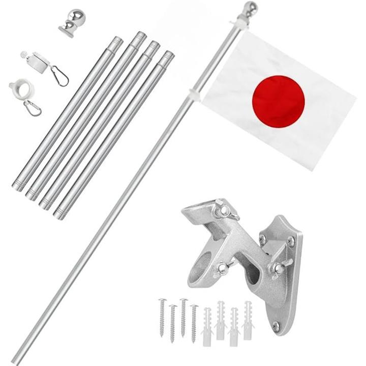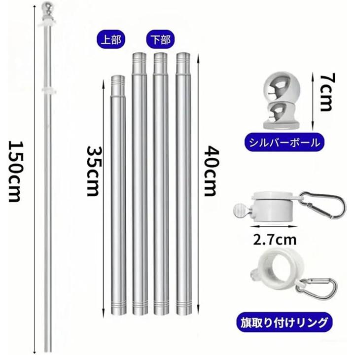 日の丸 国旗セット ステンレス製1.5mポール ホルダー付き 4分割式 コンパクト収納 屋外 屋内 取付金具付