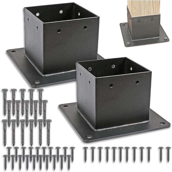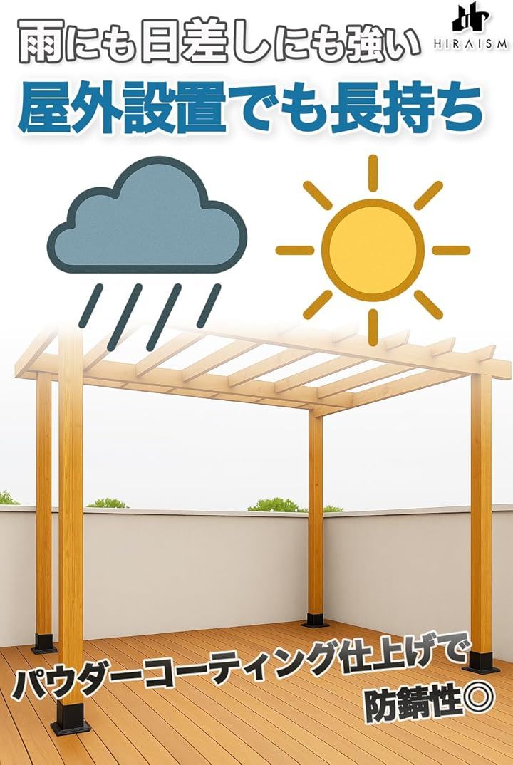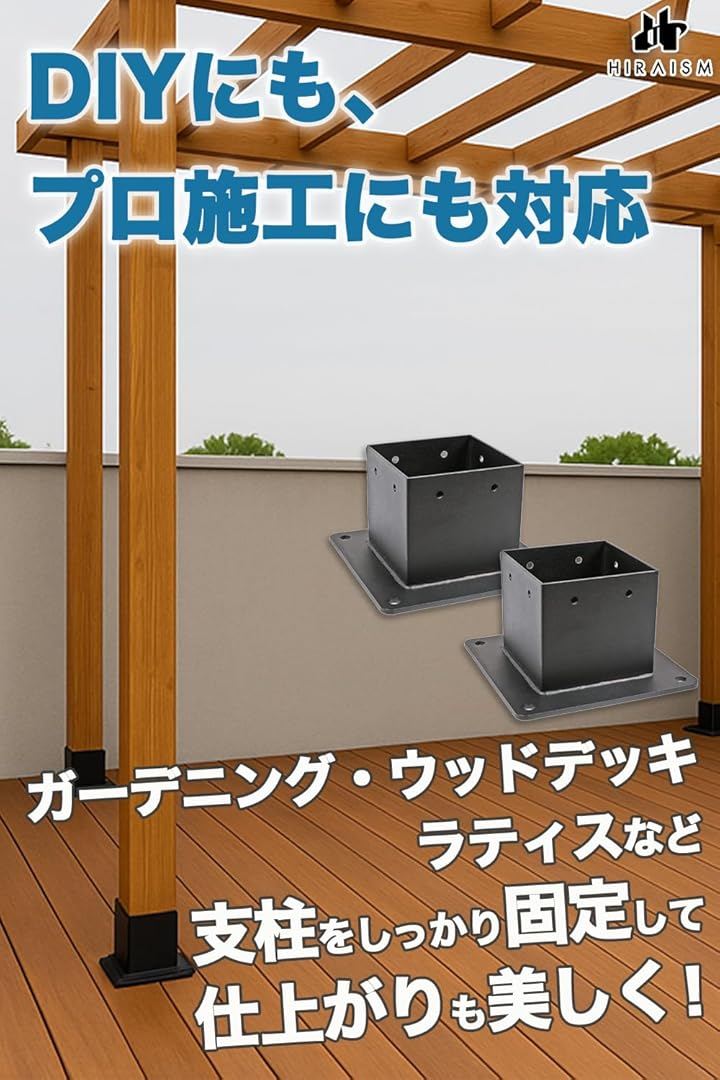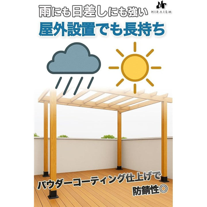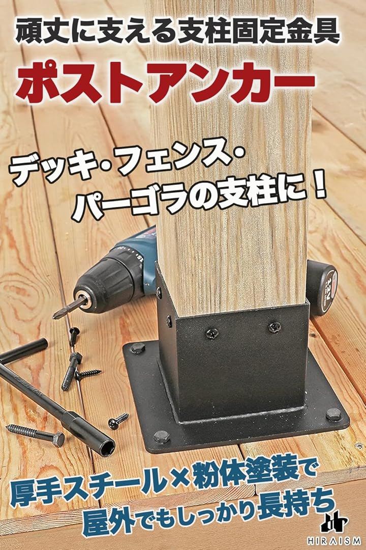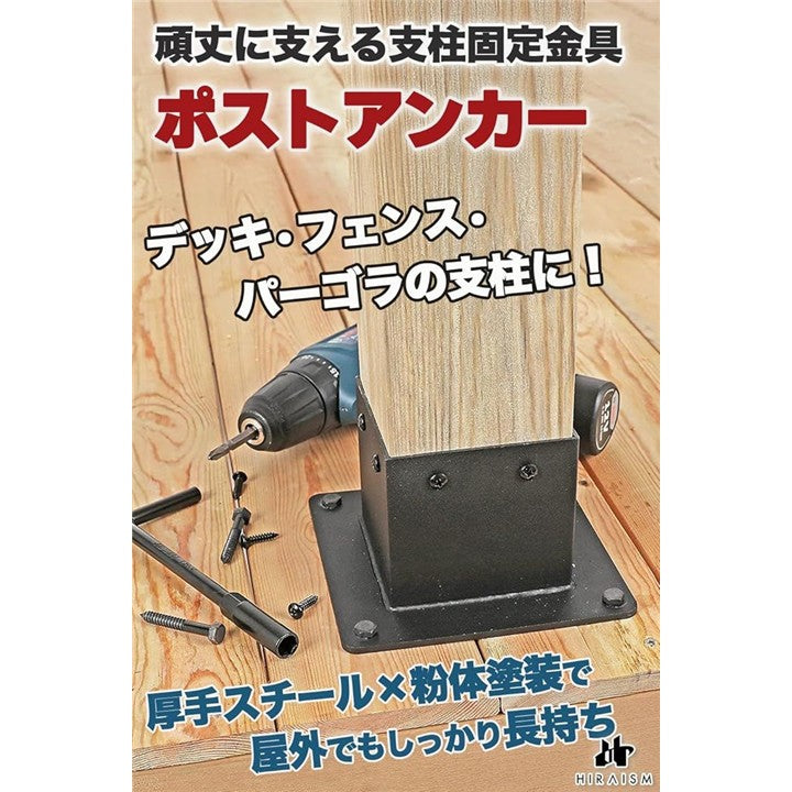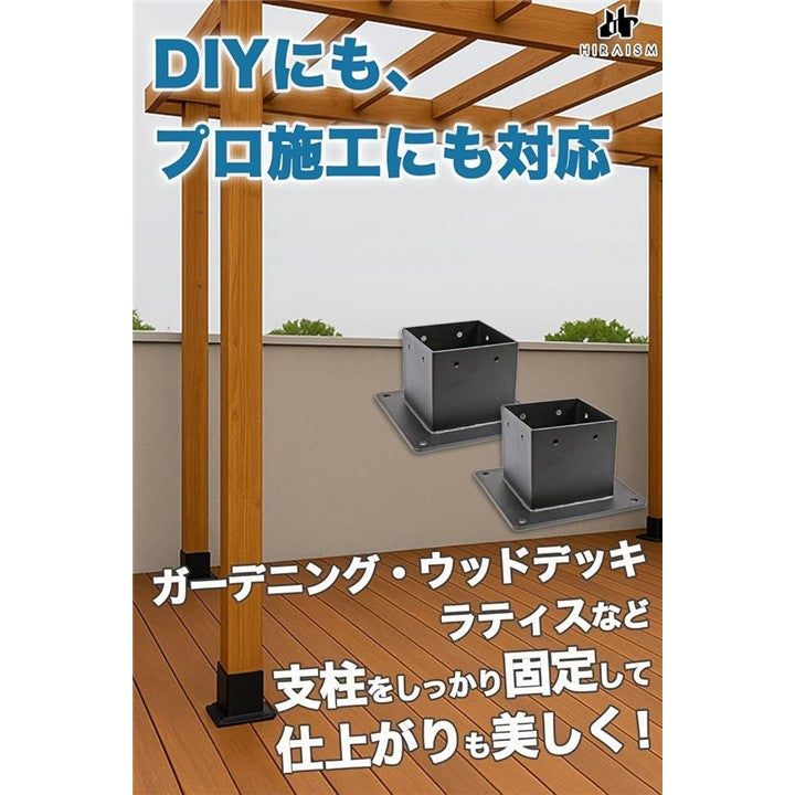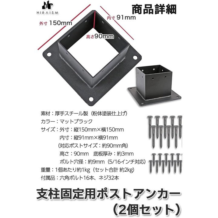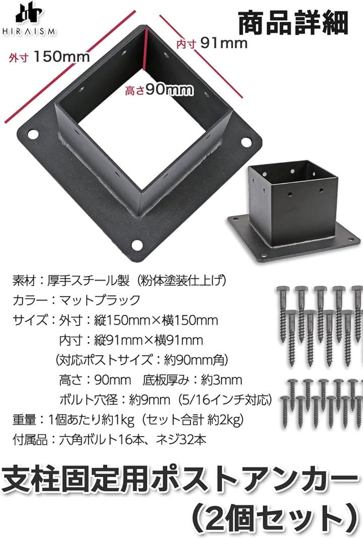 ラティス 固定 金具 柱 ポスト アンカー 90mm角 スチール製 デッキ フェンス シェード パーゴラ 支柱 マットブラック 2個セット ボルト付