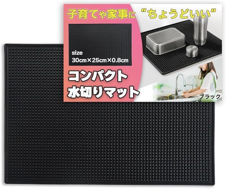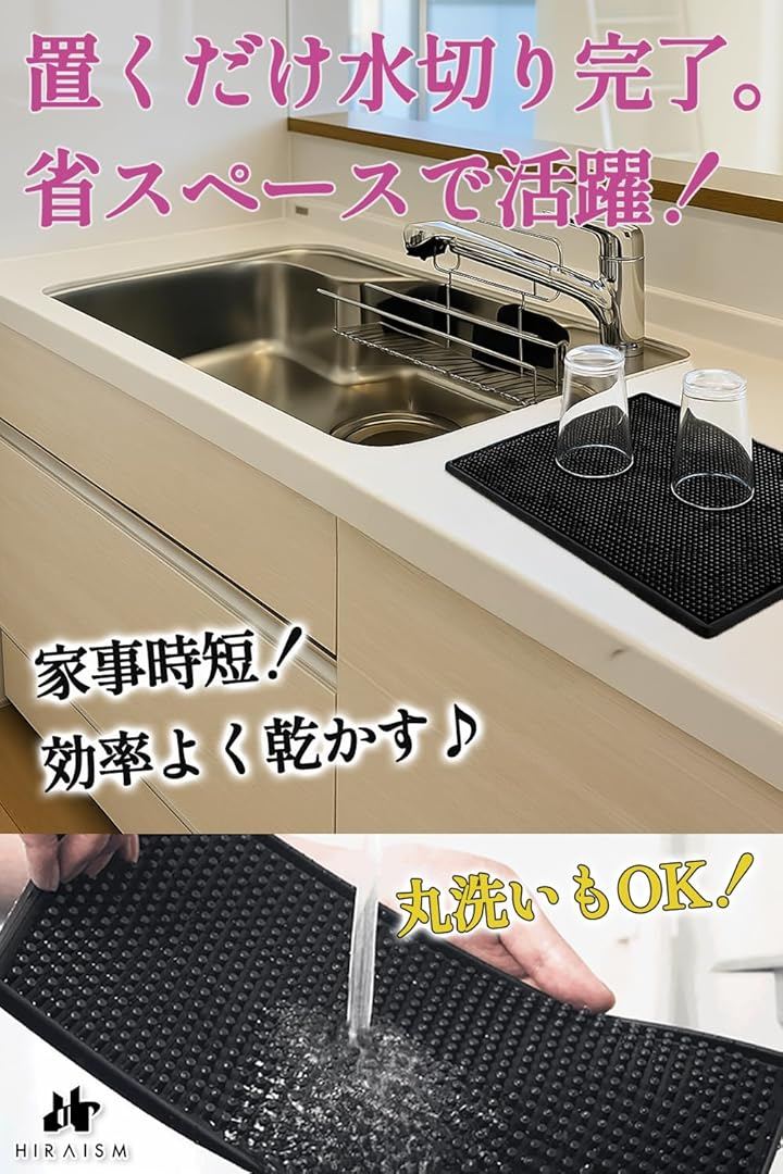 水切りマット コンパクト 省スペース PVC 滑り止め 水切れ 早い 洗いやすい 食器 コップ グラス カトラリー 乾燥用 家庭用