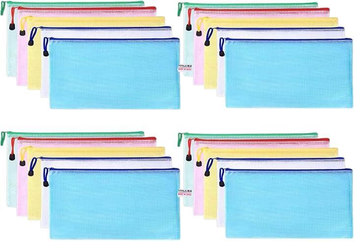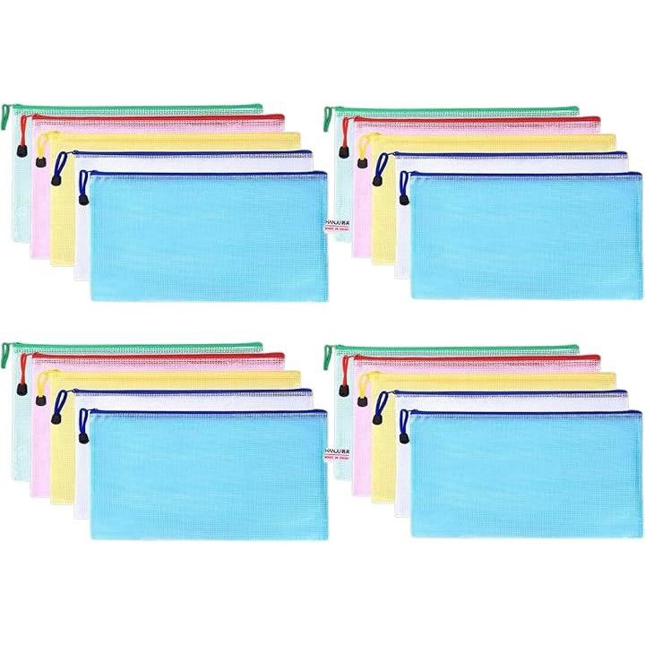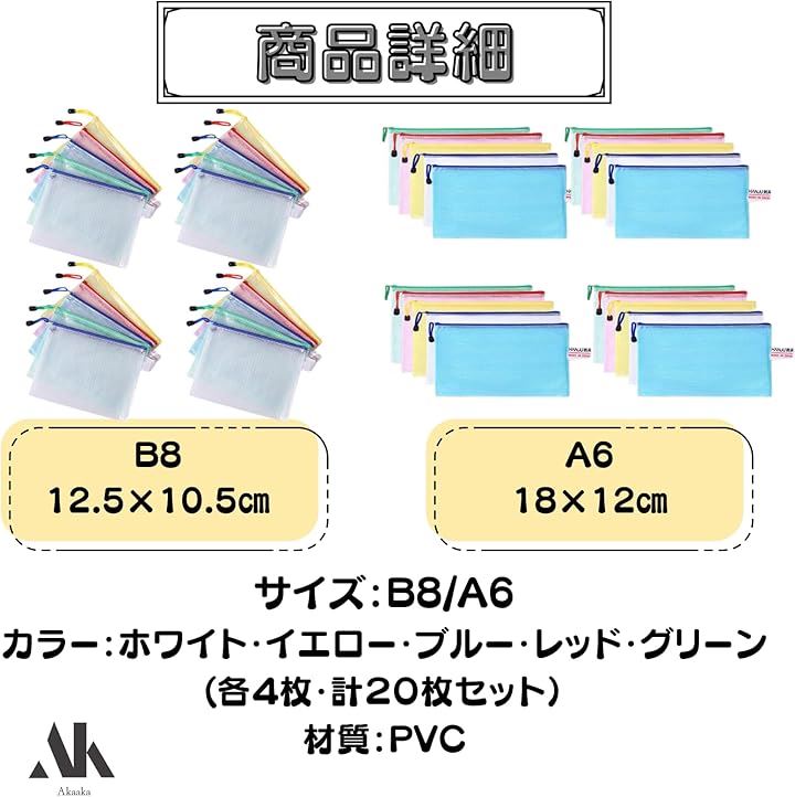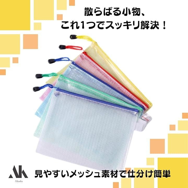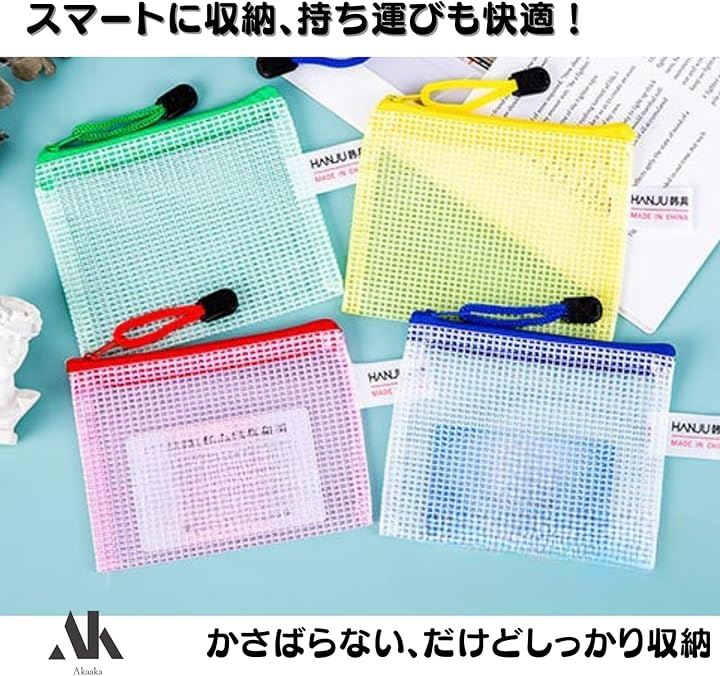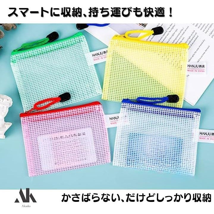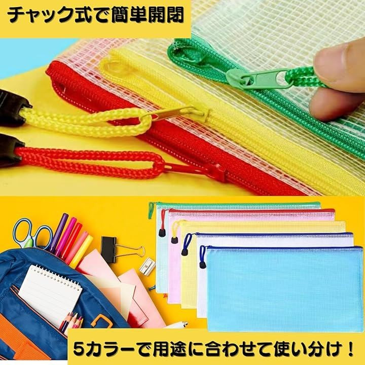 ジッパーバッグ 小物収納 メッシュタイプ 仕分け袋 PVC製 5色20枚セット