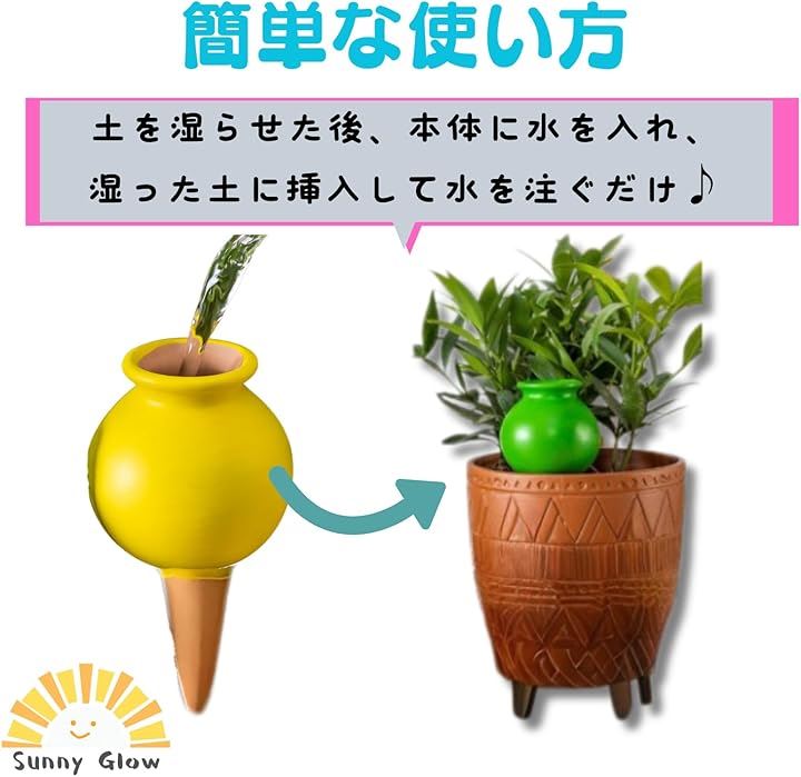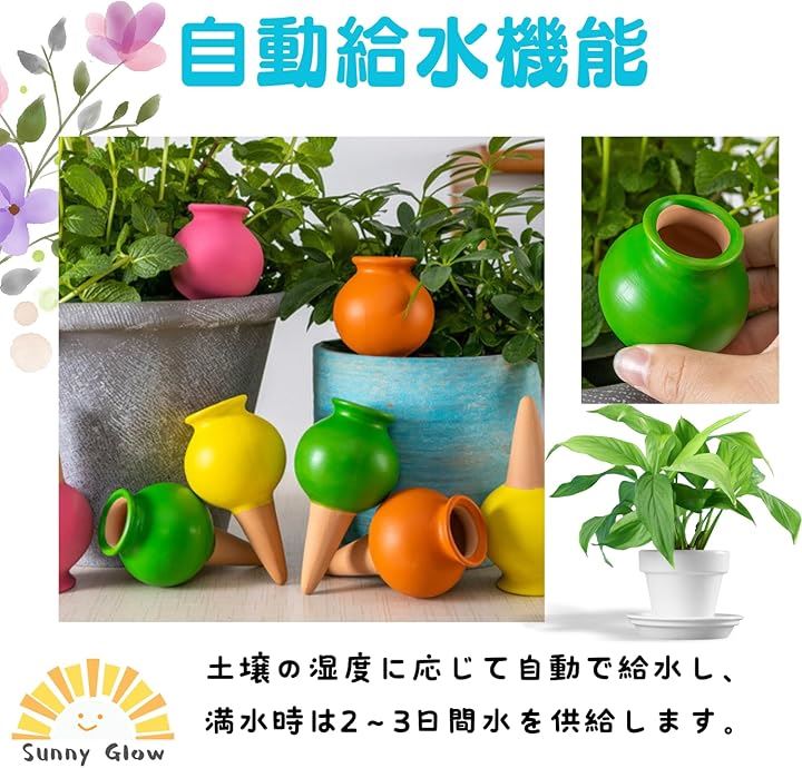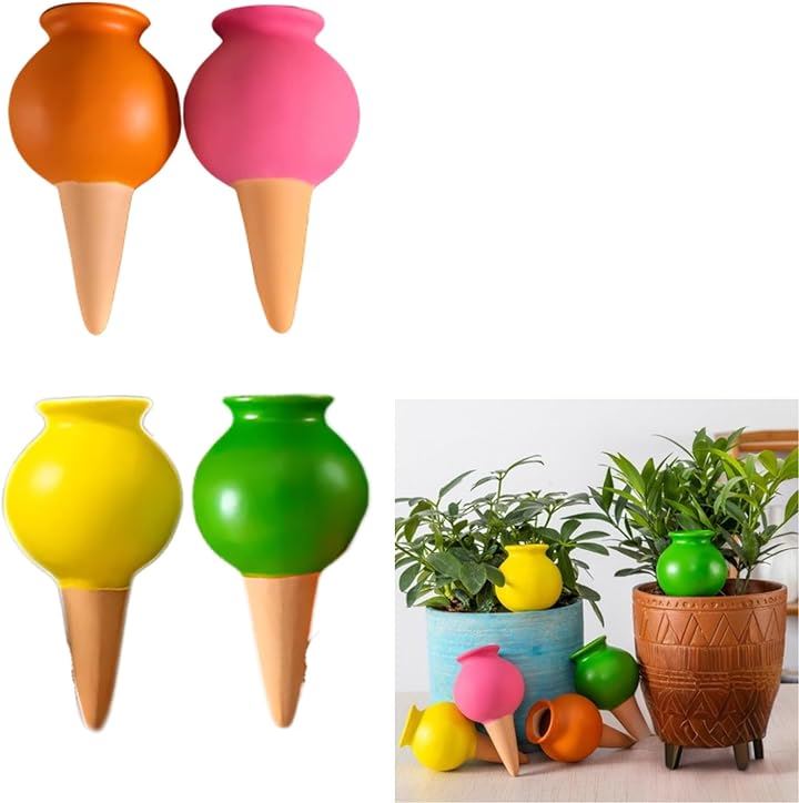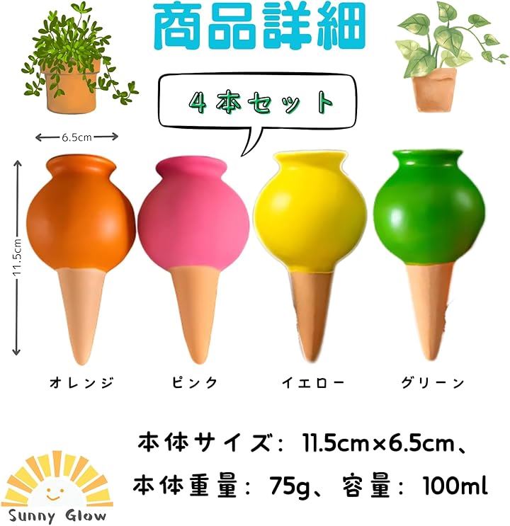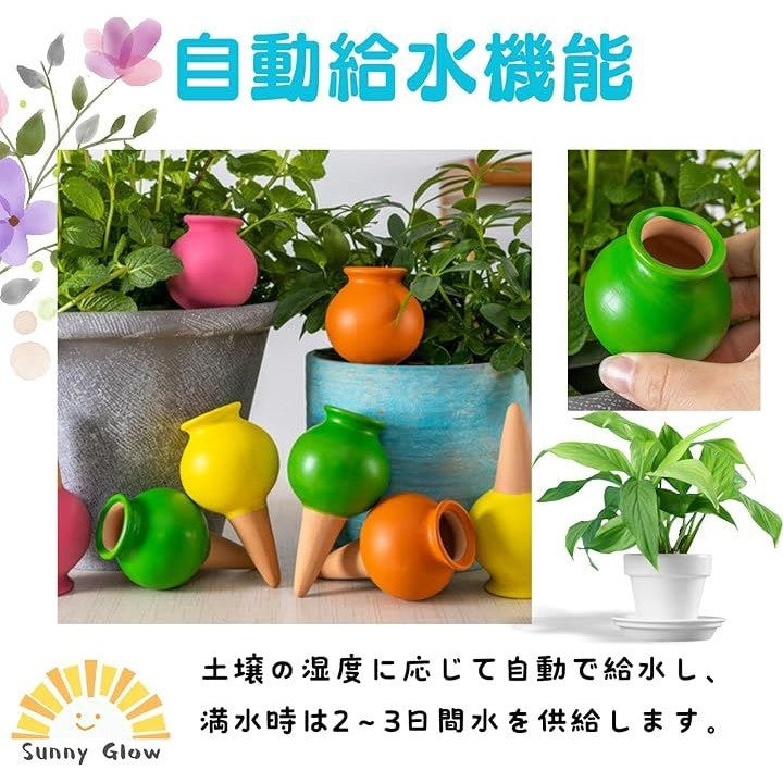 自動水やり器 4本セット 給水キャップ 陶器 植物 鉢植え プランター 留守対応 散水 園芸グッズ 簡単設置 外出時の水やりサポート
