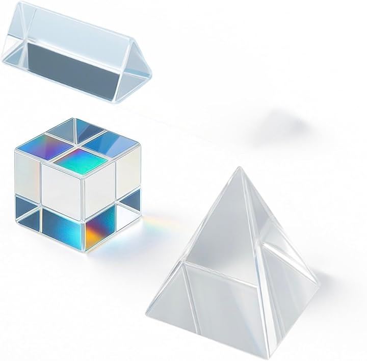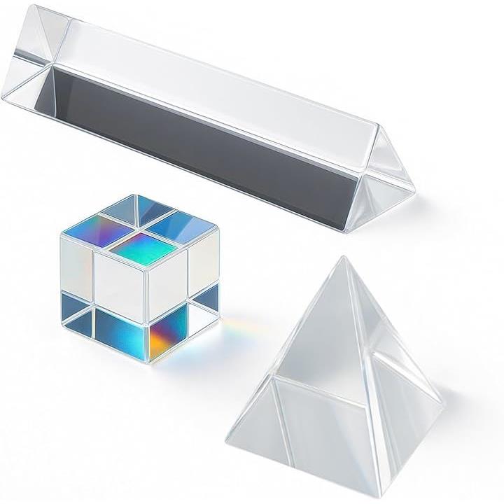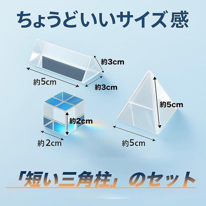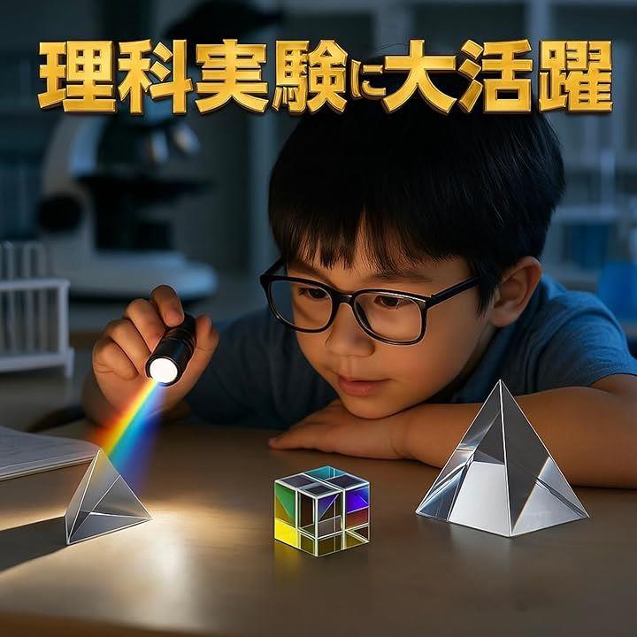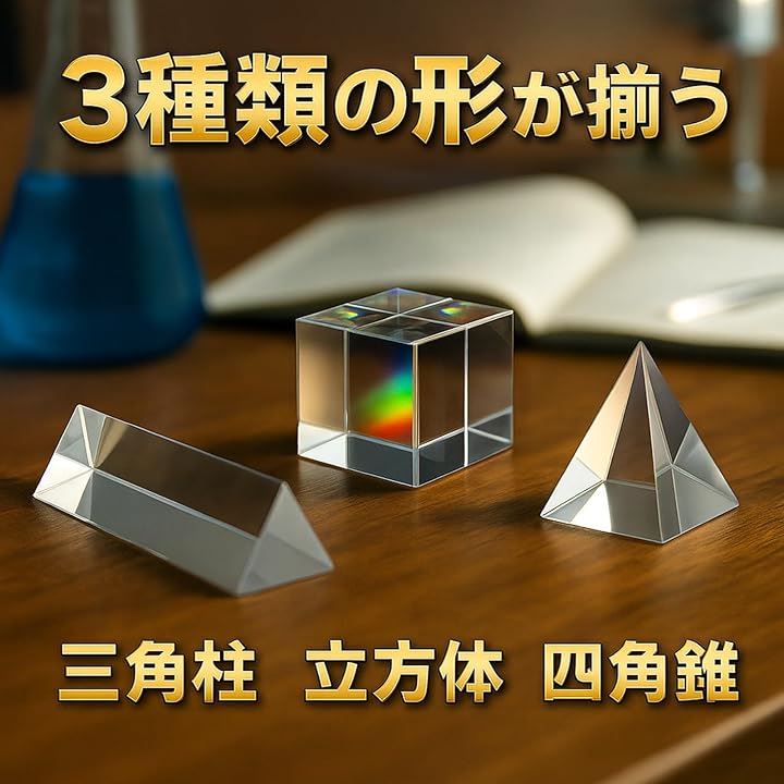 光学プリズム 3種類セット 三角柱 立方体 四角錘 ガラス製 理科実験 虹分光 反射 屈折 教育用 学習用 インテリア オブジェ