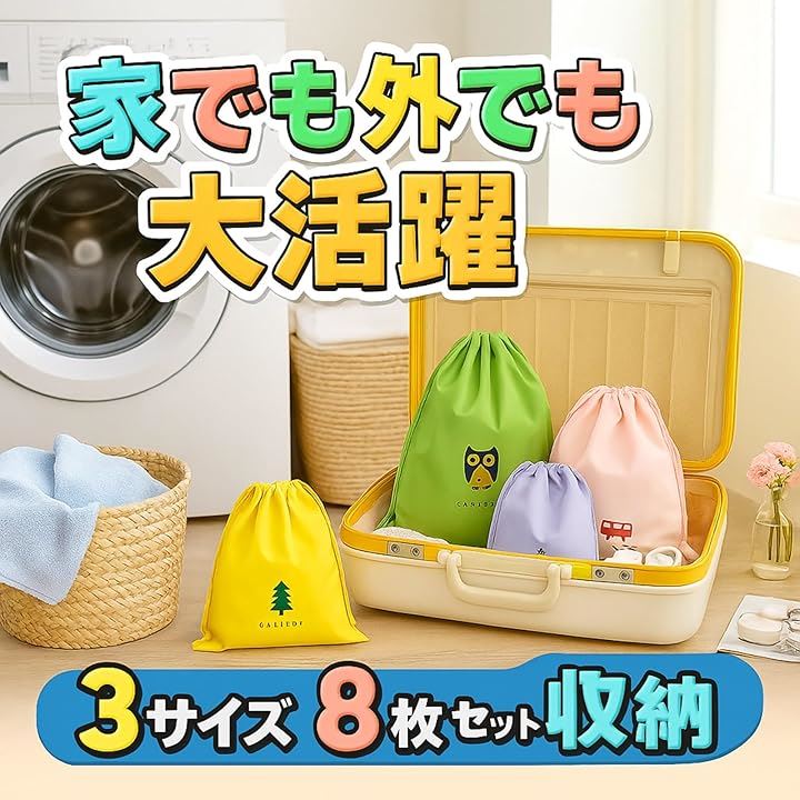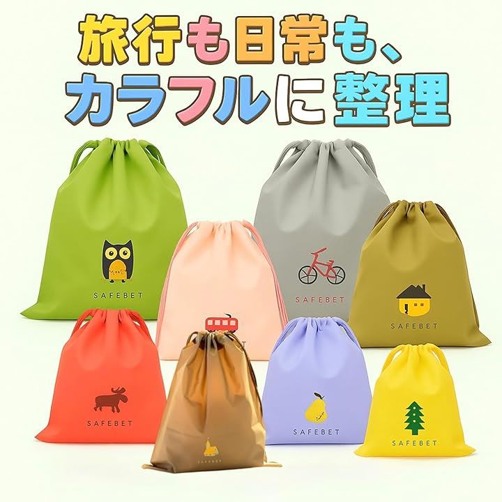 収納ポーチ 防水 巾着袋 旅行ポーチ トラベルバッグ 小物整理 出張 衣類仕分け S/M/Lサイズ 軽量 PVC素材 カラフル