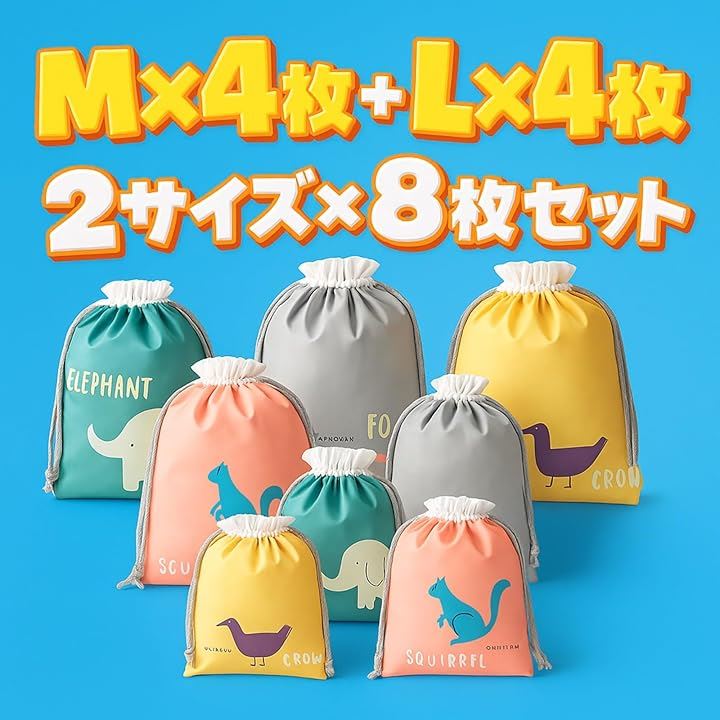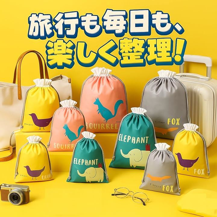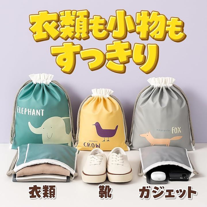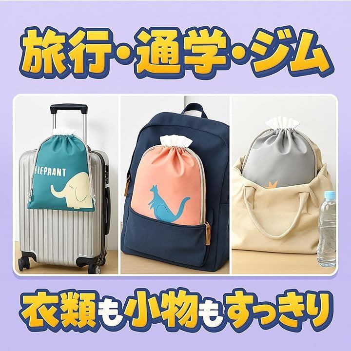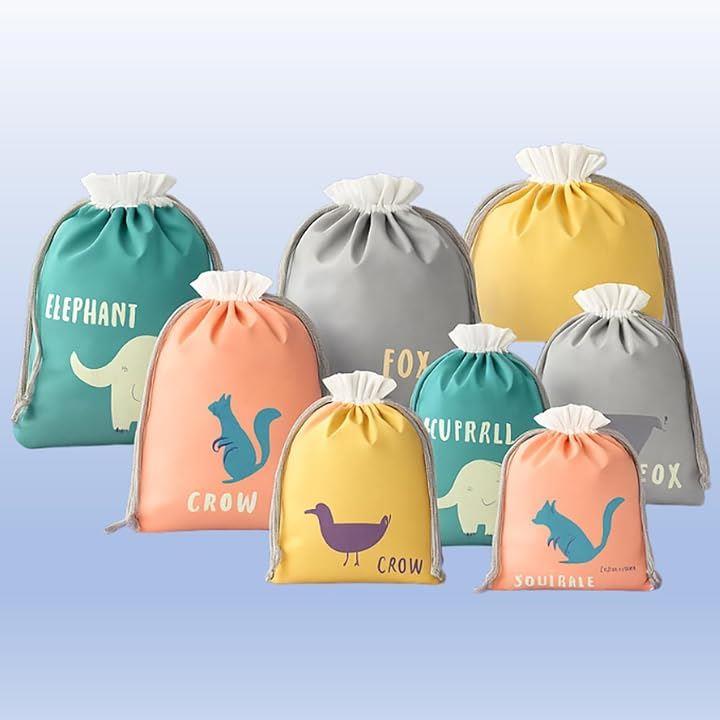 収納ポーチ 防水 防汚 巾着袋 衣類 下着 靴 小物 ビニールバッグ 旅行 温泉 ジム 通学 通園 再利用可能 動物柄