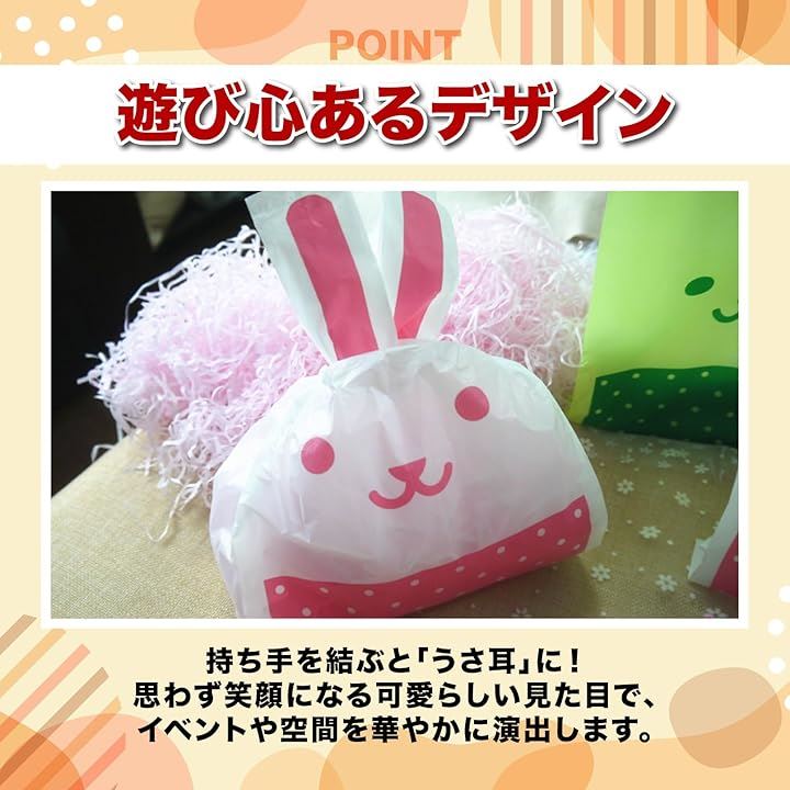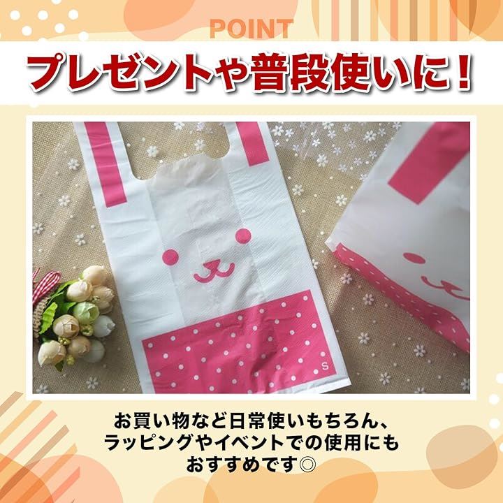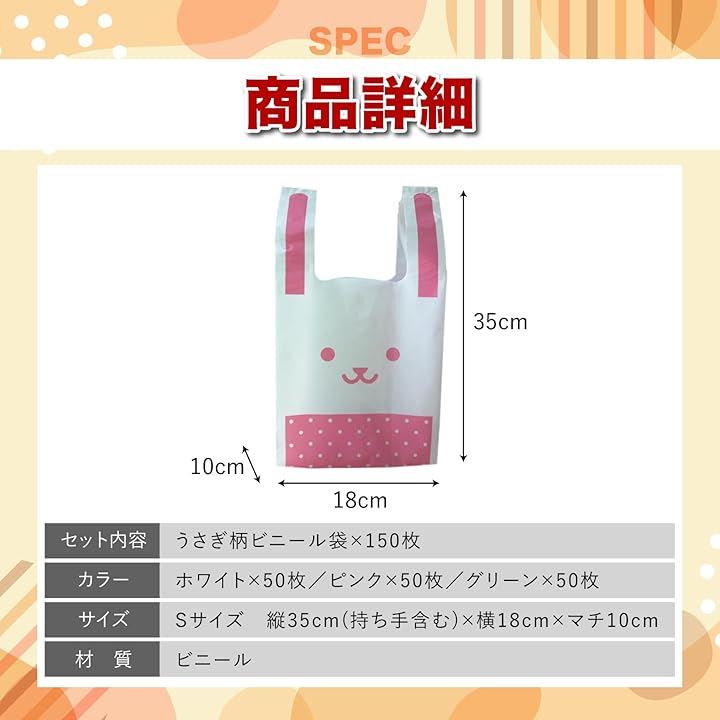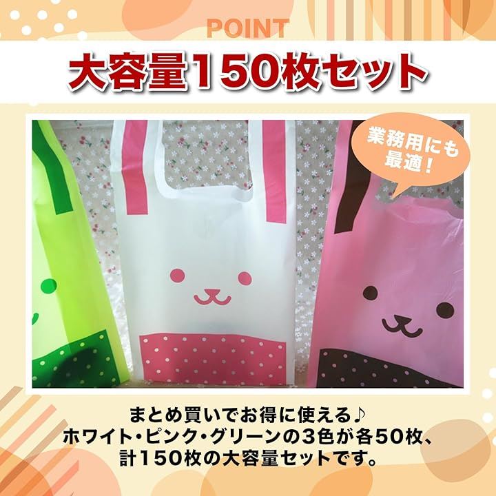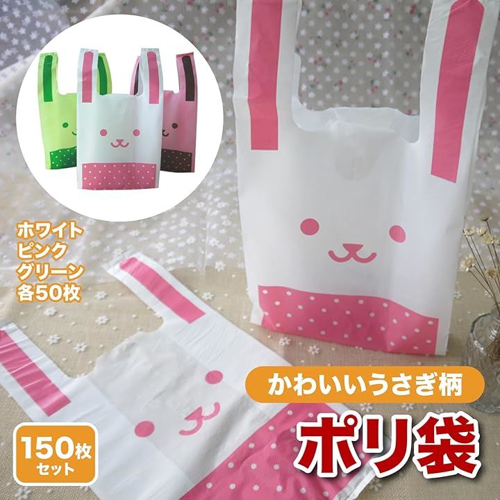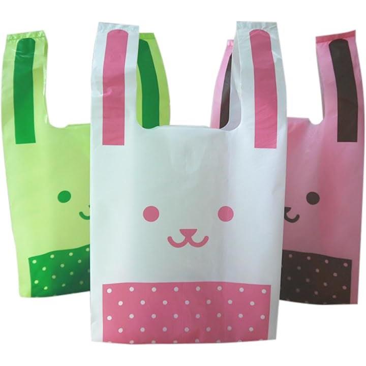 うさぎ耳 レジ袋 ビニール袋 Sサイズ 3色 各50枚 150枚セット 買い物袋 手提げ袋 ショッピングバッグ