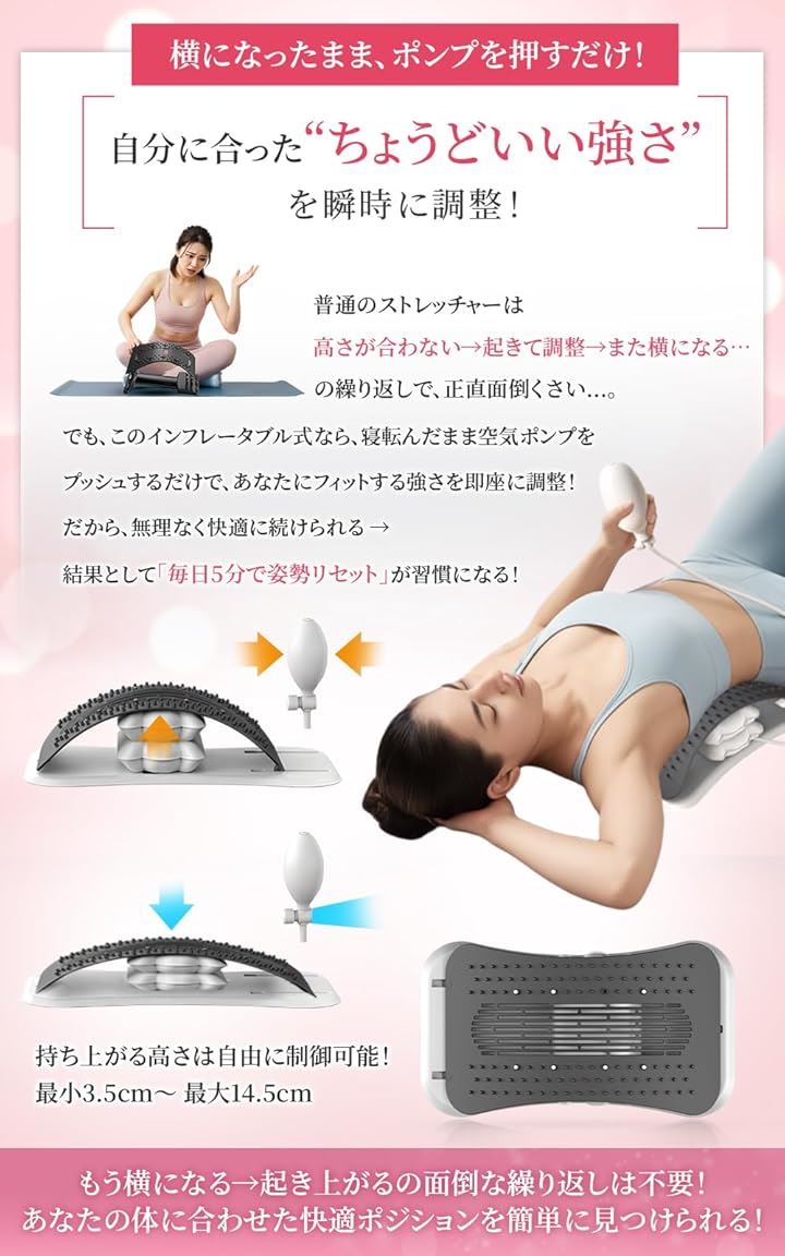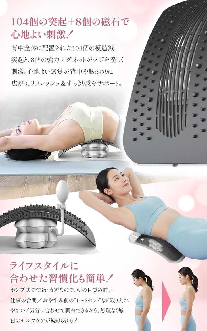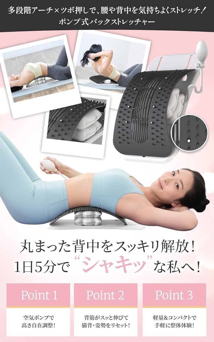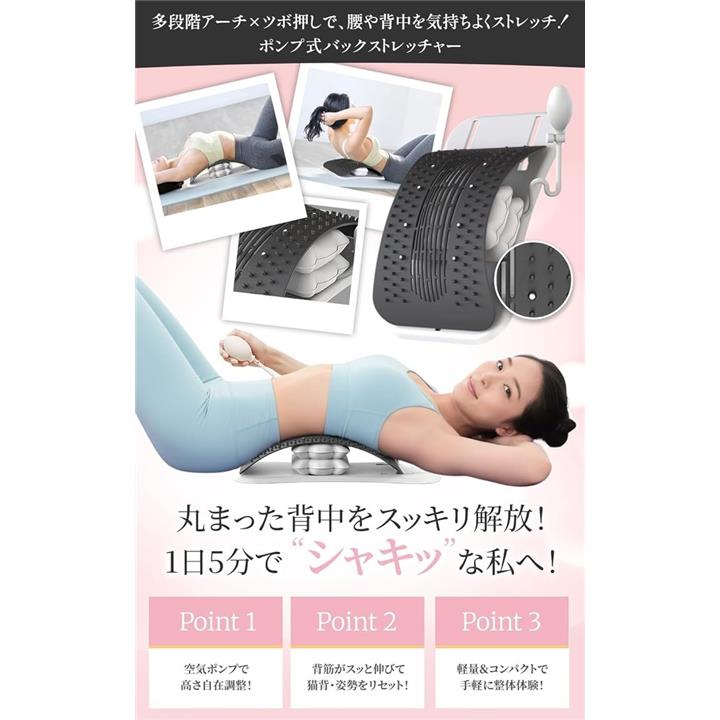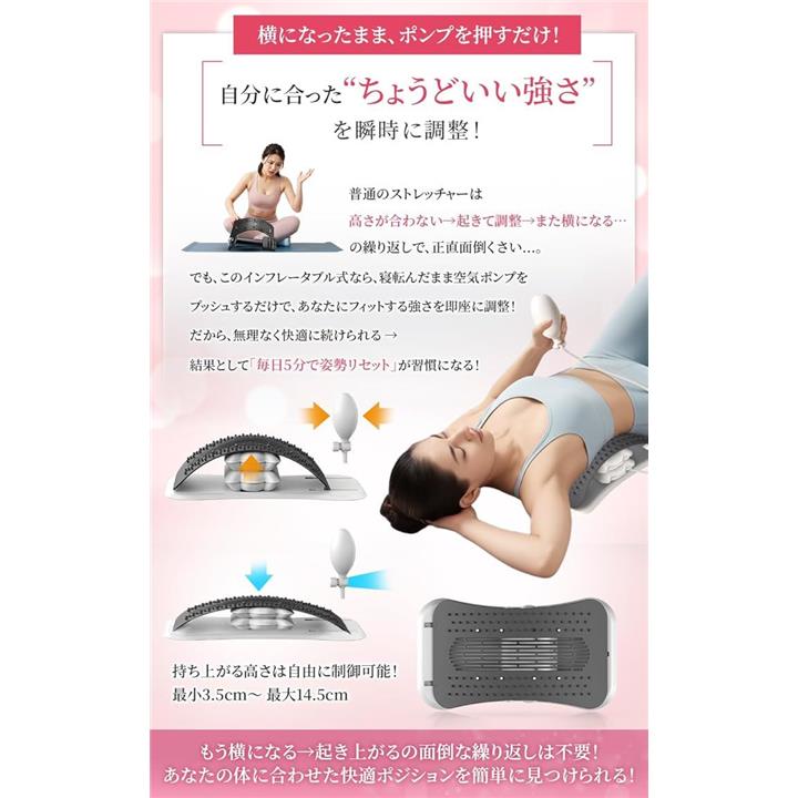 1日5分で背中解放バックストレッチャー 猫背 肩腰スッキリ のび活 背筋 伸ばし 器具 ツボ押し 空気入れタイプ