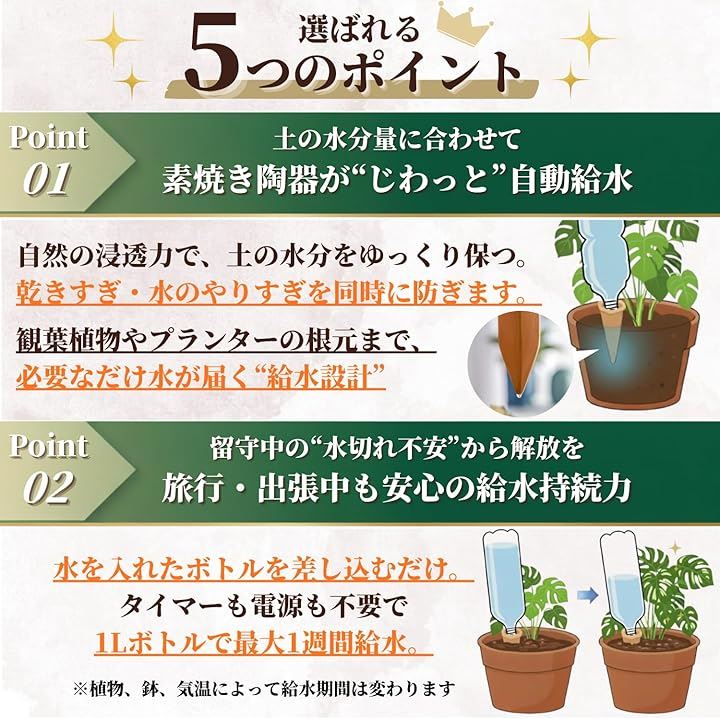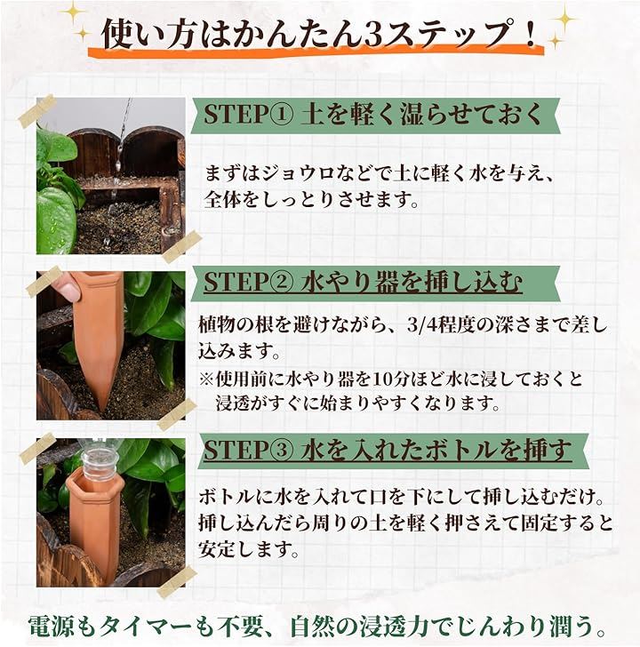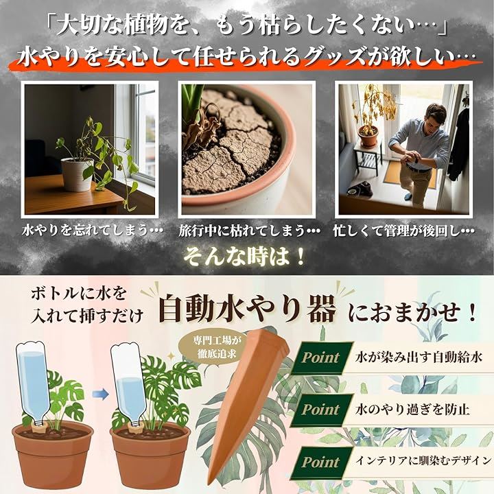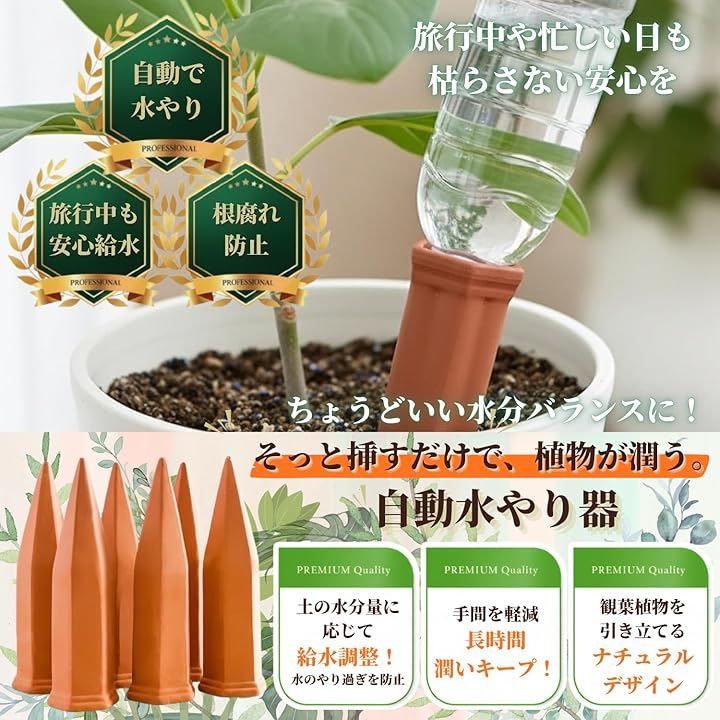 自動で水やり調整 自動水やり器 植物 旅行 留守 自動給水器 鉢植え 植木鉢 水遣り 散水機 プランター 陶器 ペットボトル 庭留守中の水やり