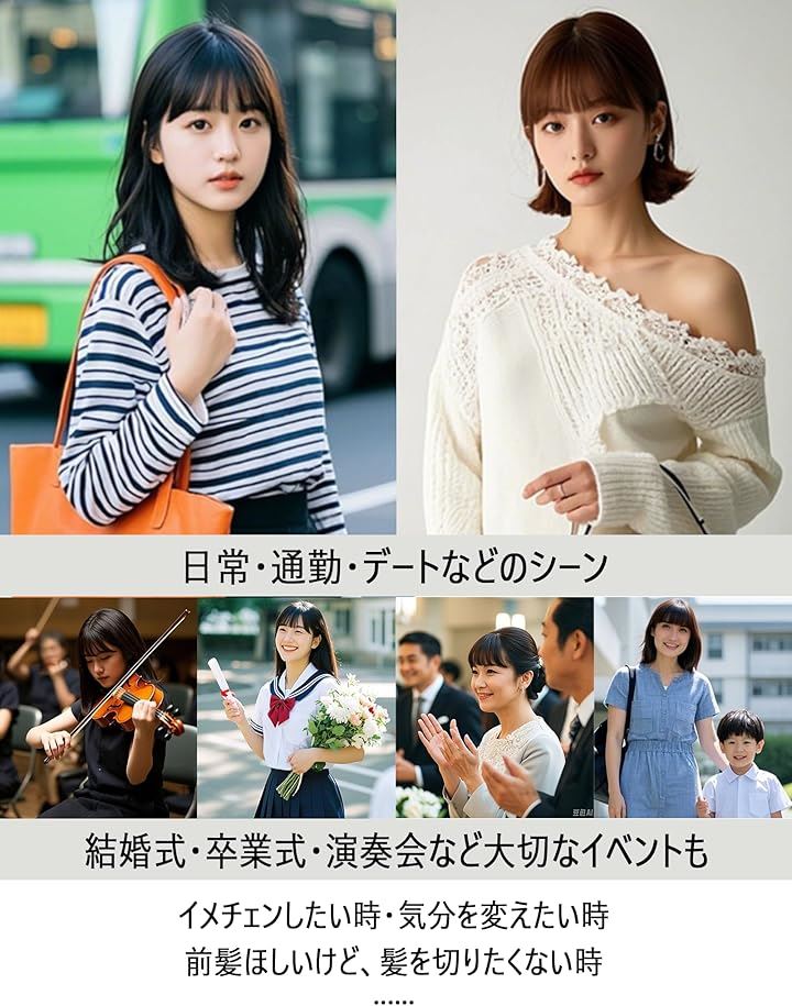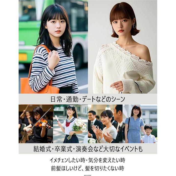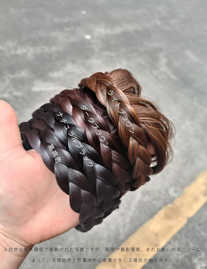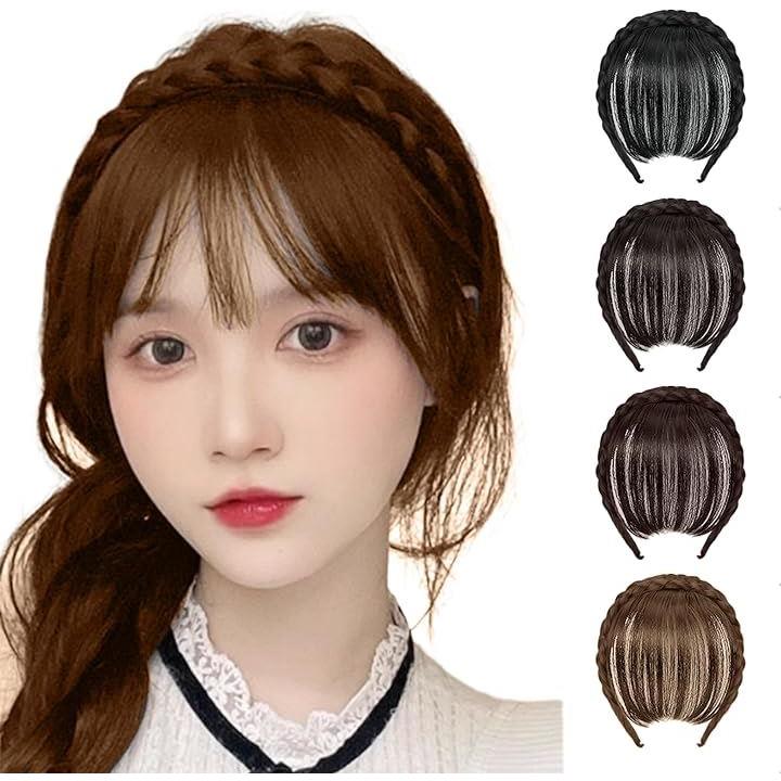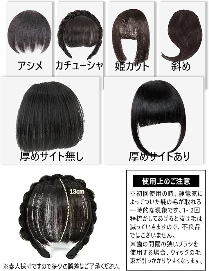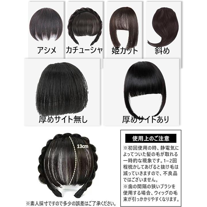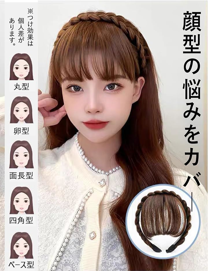 カチューシャ 前髪ウィッグ ぱっつん 重め 三つ編み 総手植え 部分ウィッグ 自然な仕上がり 学園祭 文化祭 通学用 日常 コスプレ