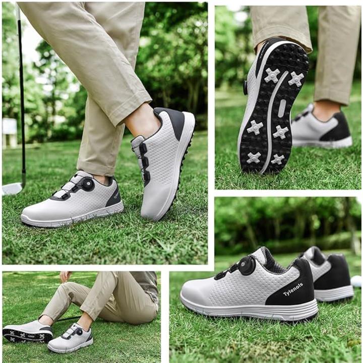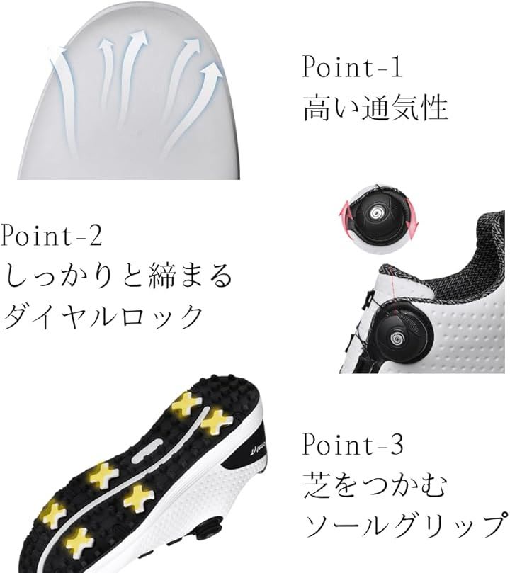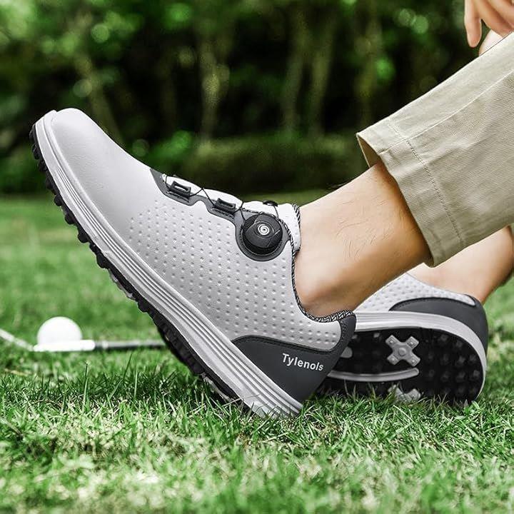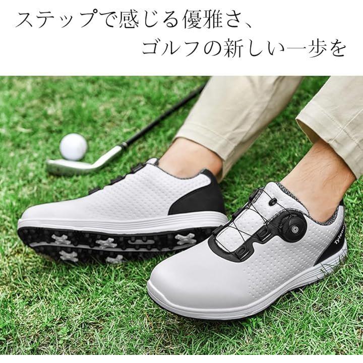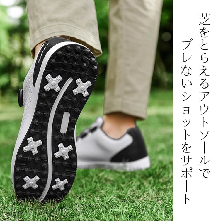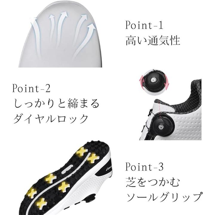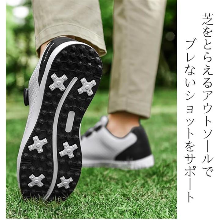 ゴルフシューズ メンズ ダイヤル式 ワイヤー スパイクレス しっかりとしたホールド感 ラウンド 軽量 通気 防水 滑りにくい