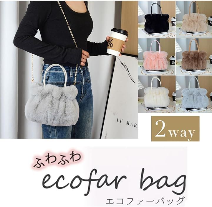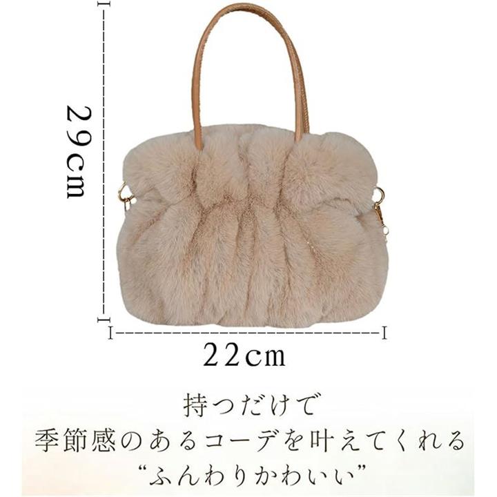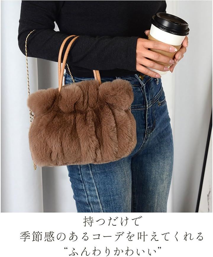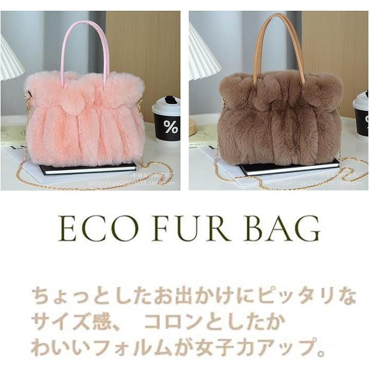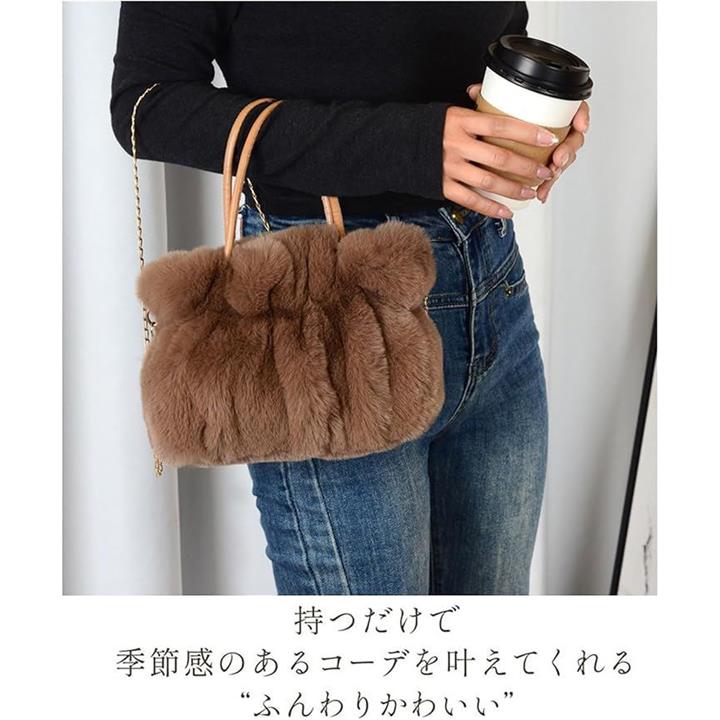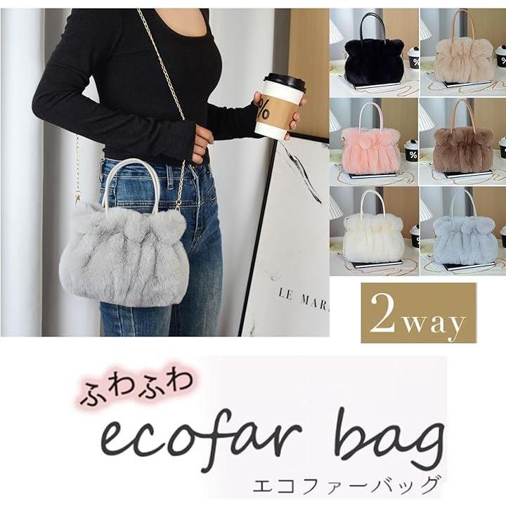 フェイクファー バッグ ハンドバッグ ショルダーバッグ 2WAY ふわふわ もこもこ 可愛い コンパクト ゴールドチェーン 韓国 カジュアル 大人 6カラー エコ かばん 鞄 モコモコ